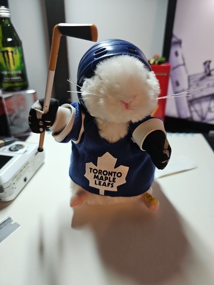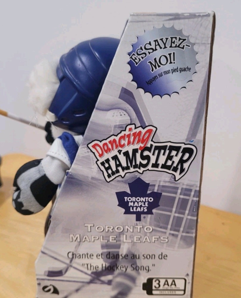 Size: NA Product: Dancing Hamster Capacity: NA Color: Blue and White UPC: Does not apply Sport: Hockey Team: Toronto Maple Leafs Pre & Post Season: Playoffs Officially Licensed: Yes gtin13: Does not apply Country/Region of Manufacture: China Brand: Gemmy League: National Hockey League (NHL)