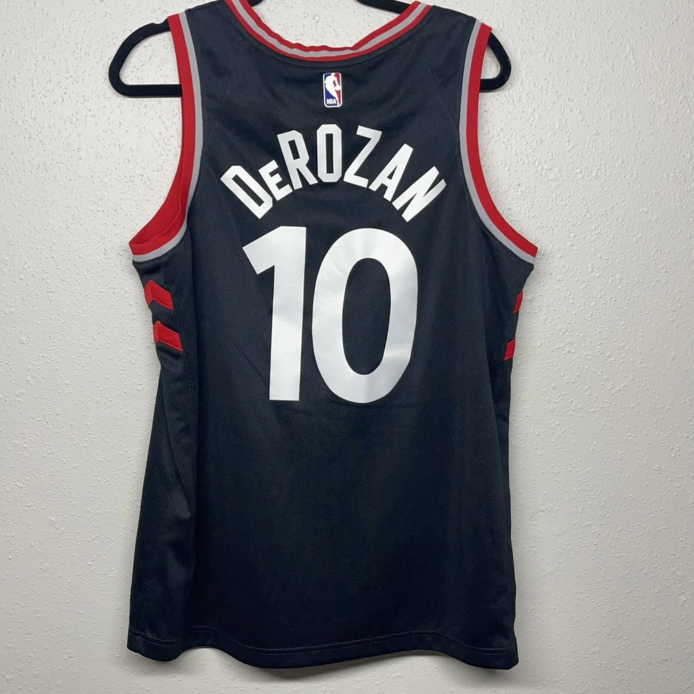 Toronto Raptors Demar DeRozan Jersey Mens Large Black 10 NBA Basketball Sports Has a super small blue spot on back of jersey on the 0 but not noticeable at all Will be shipped out with USPS Ground Advantage