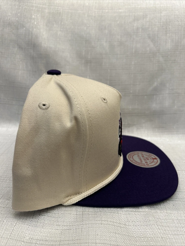 Show your love for the Toronto Raptors with this officially licensed Mitchell & Ness NBA Snapback Hat Cap. This white cap features the iconic Raptors logo and is perfect for any basketball fan. The snapback design ensures a comfortable and secure fit for all head sizes. Represent your favorite team in style with this Mitchell & Ness cap, perfect for game day or everyday wear. The hat is made with high-quality materials and is built to last. Get your hands on this Toronto Raptors NBA Snapback Hat Cap today and show your support for the team in style!