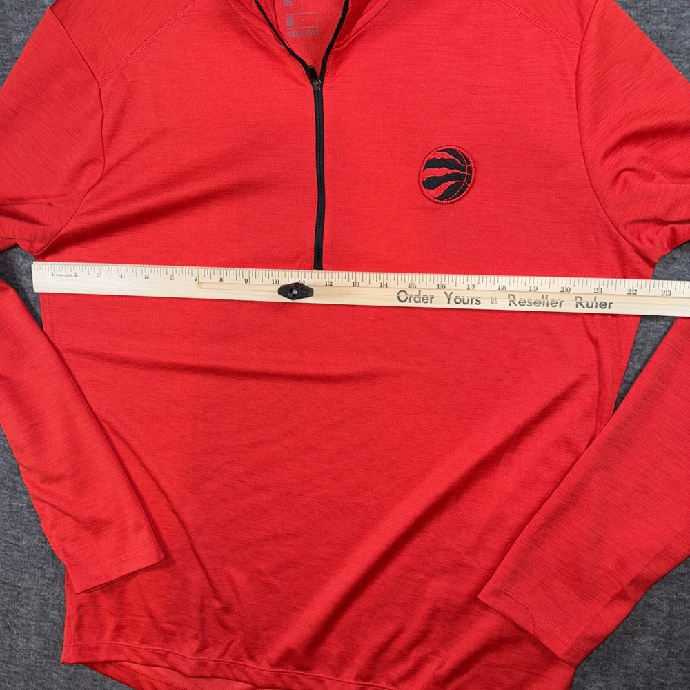 Show your support for the Toronto Raptors with this Nike Dri-Fit 1/4 Zip Up Jacket. Made with lightweight materials, this jacket is perfect for game day or everyday wear. The jacket features the iconic Raptors logo in red and is made with moisture-wicking technology to keep you cool and comfortable. This jacket is sized for men and is a regular fit. It is made in Thailand and is an authentic NBA licensed product. Perfect for any Raptors fan, this jacket is a must-have for your collection.