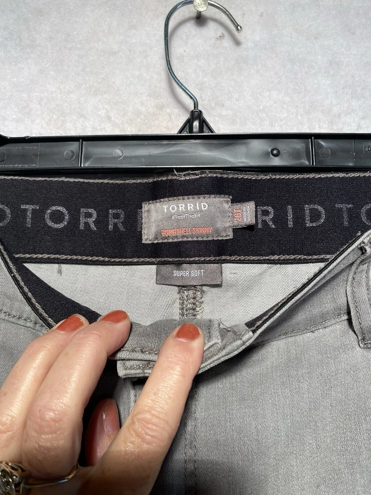 Pocket Type: 5-Pocket Design Rise: High (Greater than 10.5 in) Pattern: Solid Inseam: See Pics Size: 26T Closure: Button, Zip Color: Gray Fit: Regular Handmade: No Department: Women Personalize: No Type: Jeans Garment Care: Machine Washable Model: Torrid Bombshell Waist Size: See Pics Country/Region of Manufacture: Vietnam Season: Fall, Spring, Summer, Winter Features: Stretch Fabric Type: Denim Brand: Torrid Material: Cotton, Polyester, Spandex, rayon Style: Skinny Vintage: No Fabric Wash: Charcoal Wash Size Type: Tall