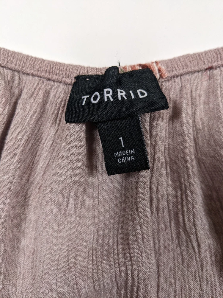This breezy gauze blouse has a crinkled finish that flows beautifully, while a front semi-sheer embroidered yoke and shoulder-baring cutouts lends a boho feel. Gauze fabric Square neck; embroidered front yoke Cold shoulder; adjustable straps Short sleeves CONTENT + CARE Rayon Dry clean only See photos for condition Size 1 - See photos for measurements G2