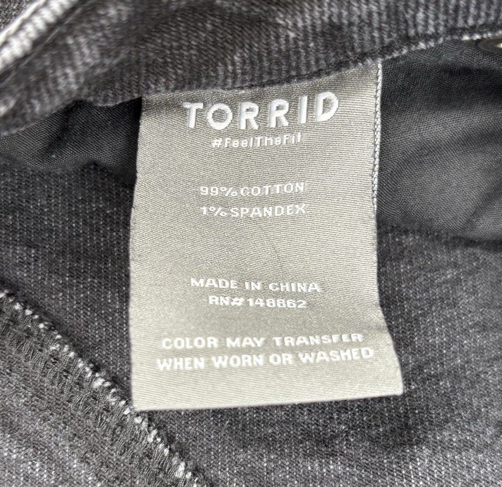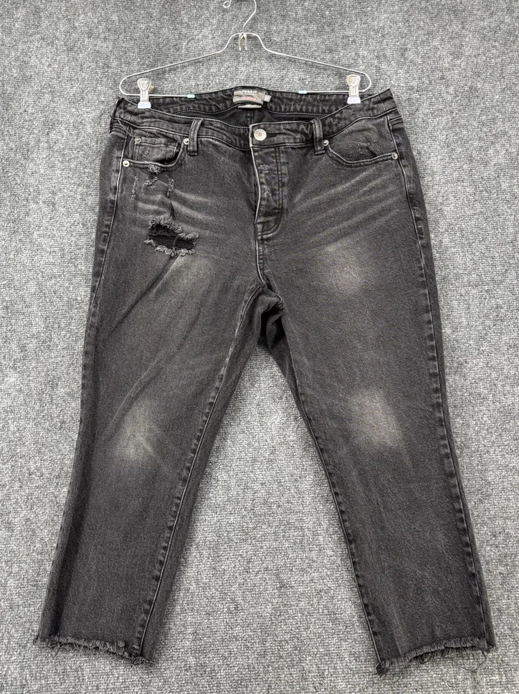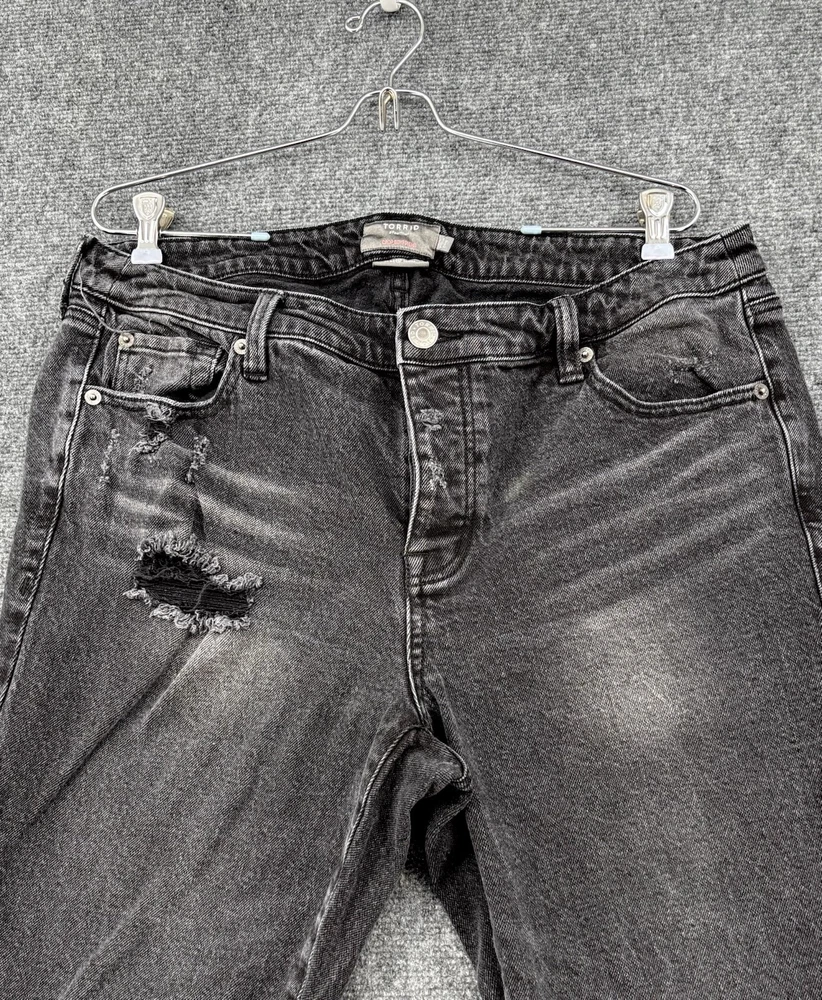 Elevate your denim game with these Torrid crop boyfriend jeans. The classic black color and solid pattern make them versatile for any occasion. The button fly closure and high-rise waist add a touch of bohemian and preppy vibe to the overall look. Made with a blend of spandex and cotton, these denim jeans are machine washable and have a breathable fabric type. The distressed details and pockets make them perfect for casual wear while the stretch and comfort features provide all-day wearability. Ideal for winter, summer, fall, and spring, these jeans are a must-have addition to any wardrobe. Items are PREOWNED, NWT or NWOT (NEW WITH or WITHOUT TAGS). Items are checked for flaws and if applicable are pictured. Items are well cared for and stored indoors. Please review and compare the measurements we provide in the photos. Measurements are approximate and in flat inches. Please keep in mind many items are preowned and may not reflect the manufacturer's tag/sizing and may have shrunken. We ship quickly. 30 day returns available. Please contact with any questions. Thank you for your business and remember to save our store info as we add new items often. God Bless Mdubs Clothing