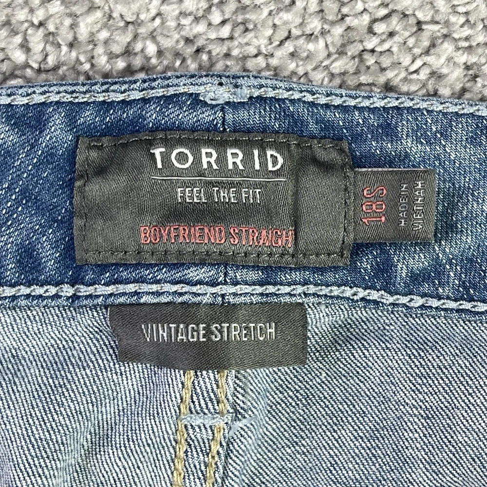 Pattern: Solid Features: Stretch Vintage: No Fit: Regular Brand: Torrid Size: 18 Garment Care: Machine Washable Type: Jeans Rise: Mid (8.5-10.5 in) Fabric Wash: Light Waist Size: 38 in Department: Women Color: Blue Closure: Zip Fabric Type: Denim Material: Cotton Blend Size Type: Plus Inseam: 26.5 in Seller Notes: “In excellent, pre-owned condition with no flaws to note.” Season: Fall, Spring, Summer, Winter Style: Straight