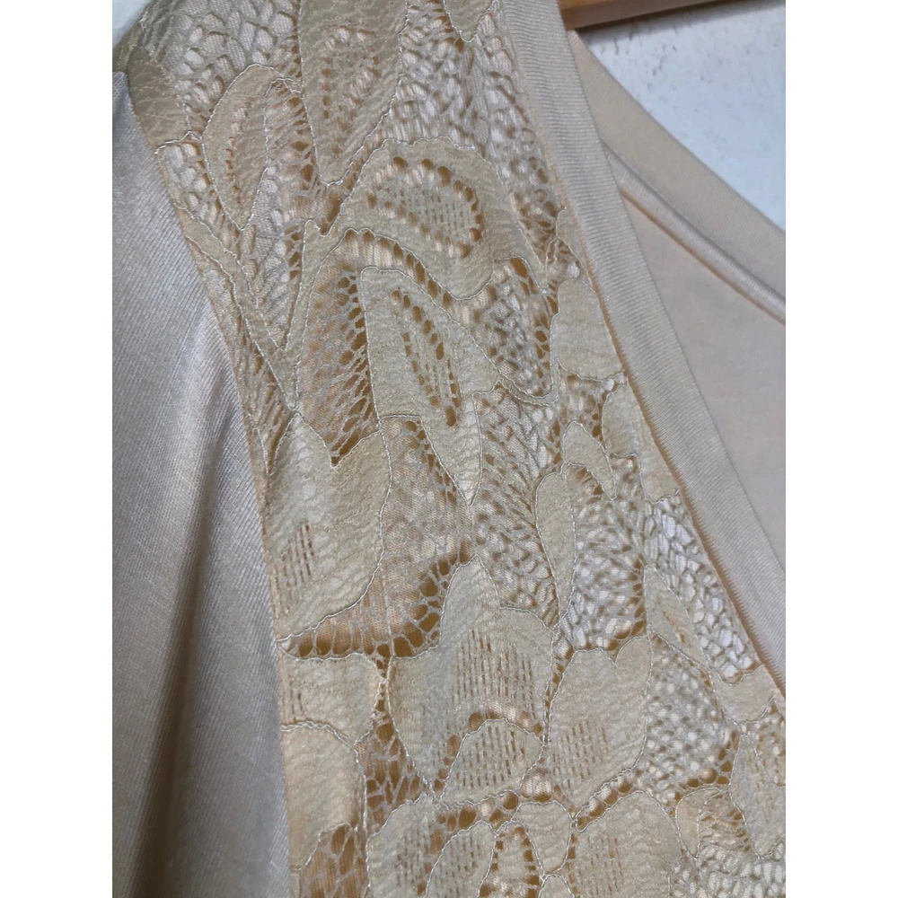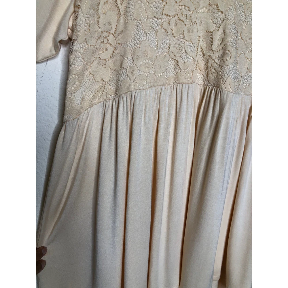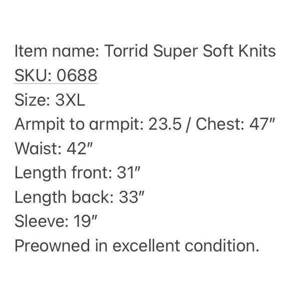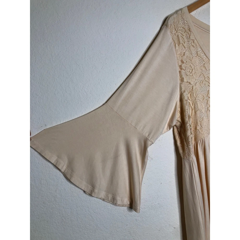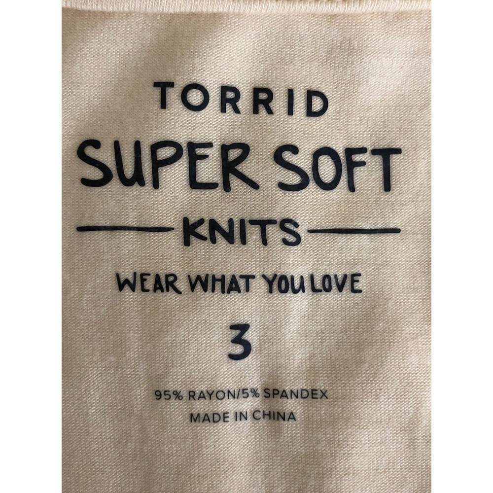 Torrid Super Soft Knits top in a delicate peach hue features a romantic lace yoke on both the front and back. Designed with a flattering babydoll silhouette, this piece includes a V-neckline and dramatic bell sleeves for a bohemian-inspired look. The lightweight rayon-blend fabric offers a comfortable stretch, while the high-low hem adds modern dimension to the flowy fit. Preowned in excellent condition. Measurements: • Chest: 47" • Waist: 42" • Length front: 31" • Length back: 33" • Sleeve: 19" Size: 3X Brand: Torrid Style: Babydoll Neckline: V-Neck Sleeve Type: Bell Sleeve Material: Rayon, Spandex, Nylon Pattern: Solid with Lace Trim Color: Peach / Apricot Occasion: Casual Fit: Relaxed Features: High-Low Hem, Lace Yoke Season: Spring, Summer, Fall Boho, Romantic, Feminine, Plus Size, Cottagecore, Ethereal, Flowy, Softcore, Pastel, Victorian Inspired, Peplum, Flare Sleeve, Whimsy, Soft Girl • I ship within two business days. • All items come from a pet-free, smoke-free home. Thanks for shopping at Second Harvest Shop! Your support means the world to us.