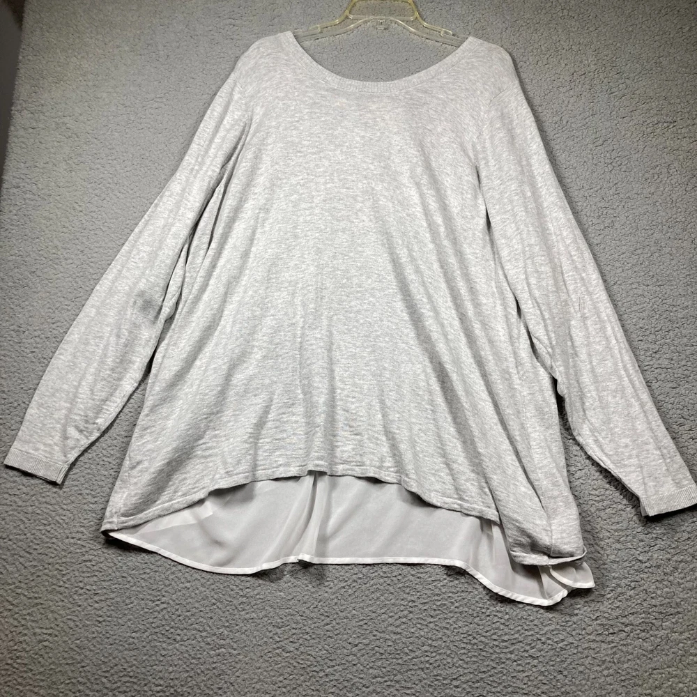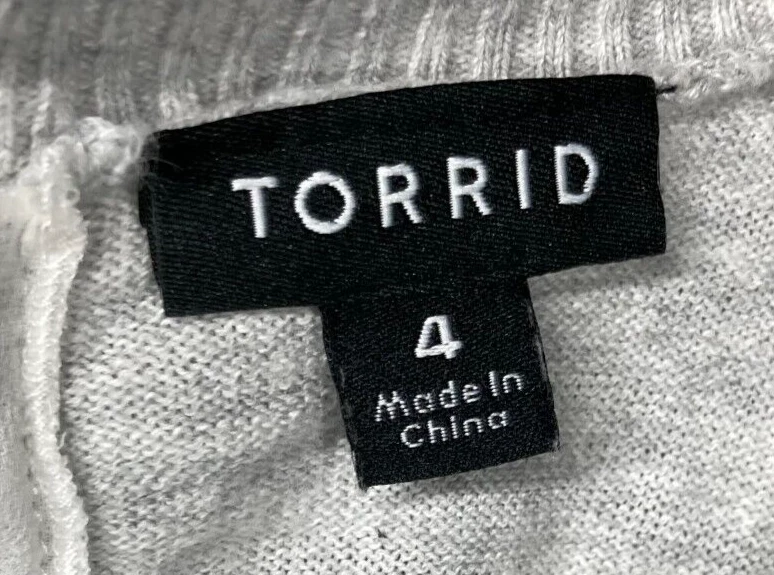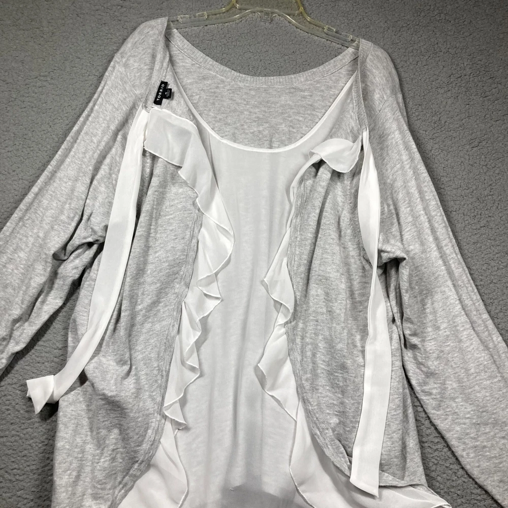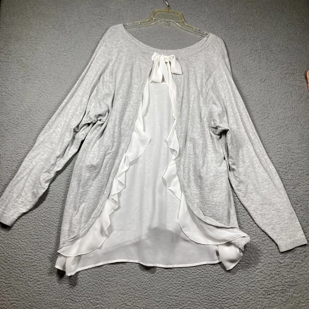 For Sale: Torrid Sweater Women's 4 4X Grey White Chiffon Ruffled Back Feminine Classic Please check photos carefully for details/measurements. Measure your favorite garment and compare. * May be wrinkled upon arrival due to packaging. * This item has been cleaned per eBay policy. We welcome questions and offers! Thank you for taking time to view and consider this item!