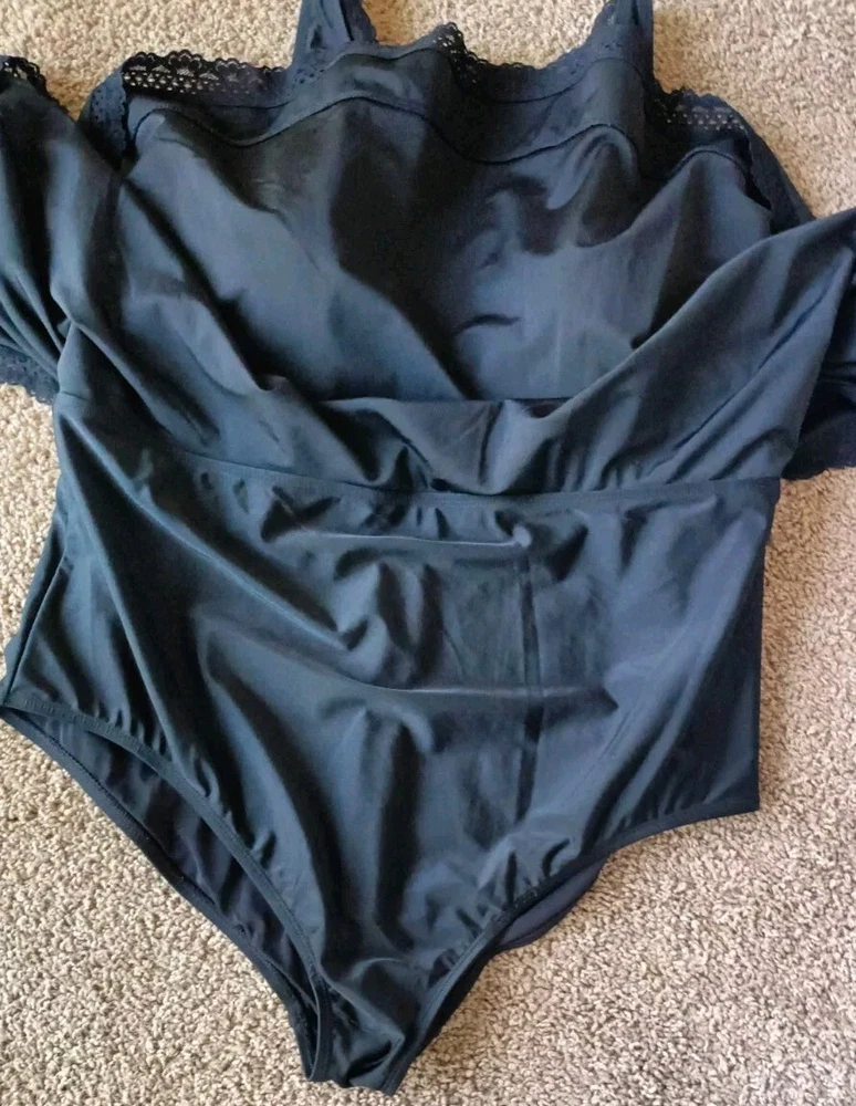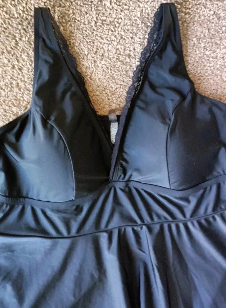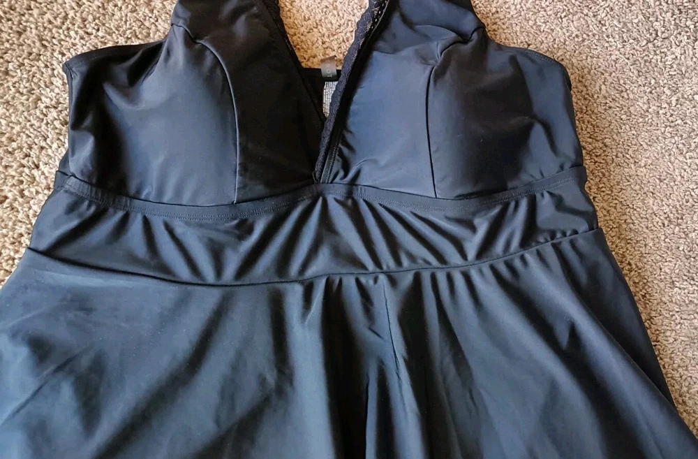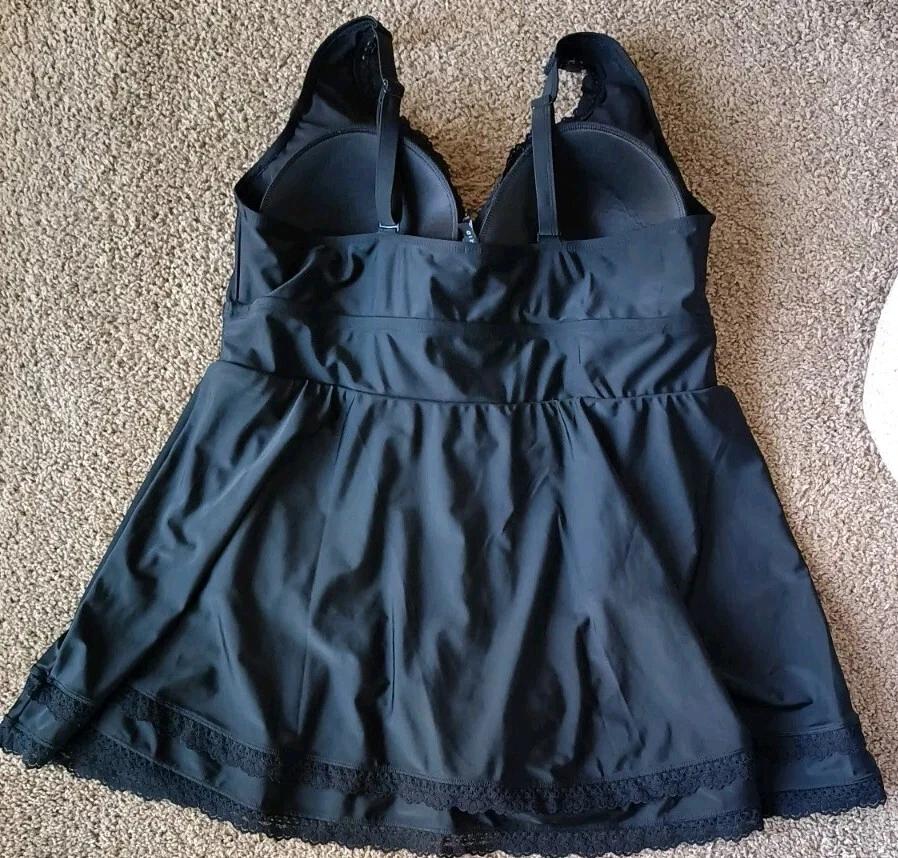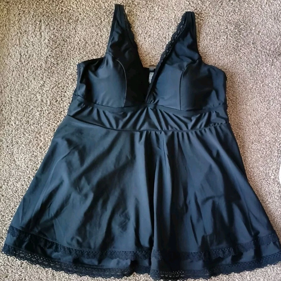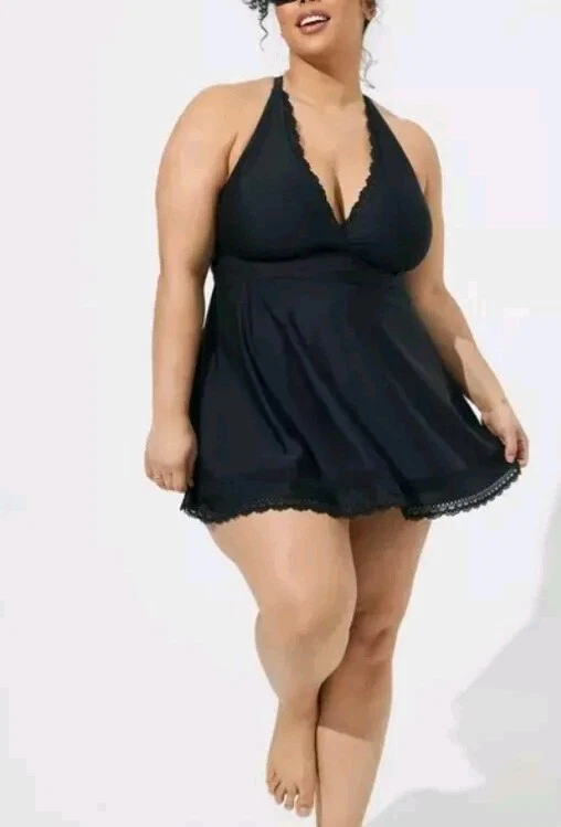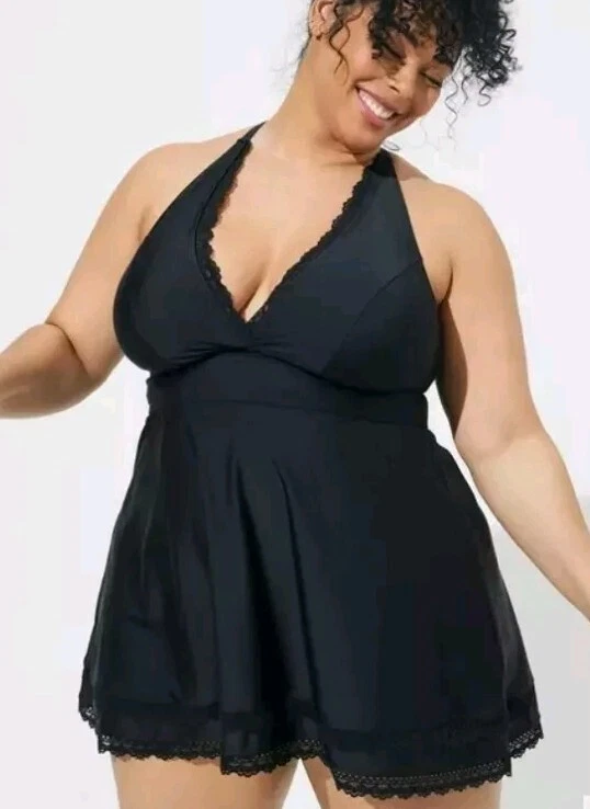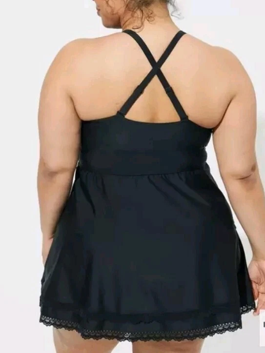 Torrid One Piece Swim Dress With Brief Size 3 3X Wireless Crochet Lace Trimmed Black Excellent Pre-owned Condition