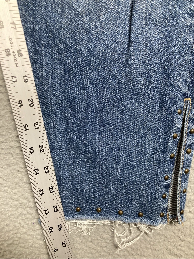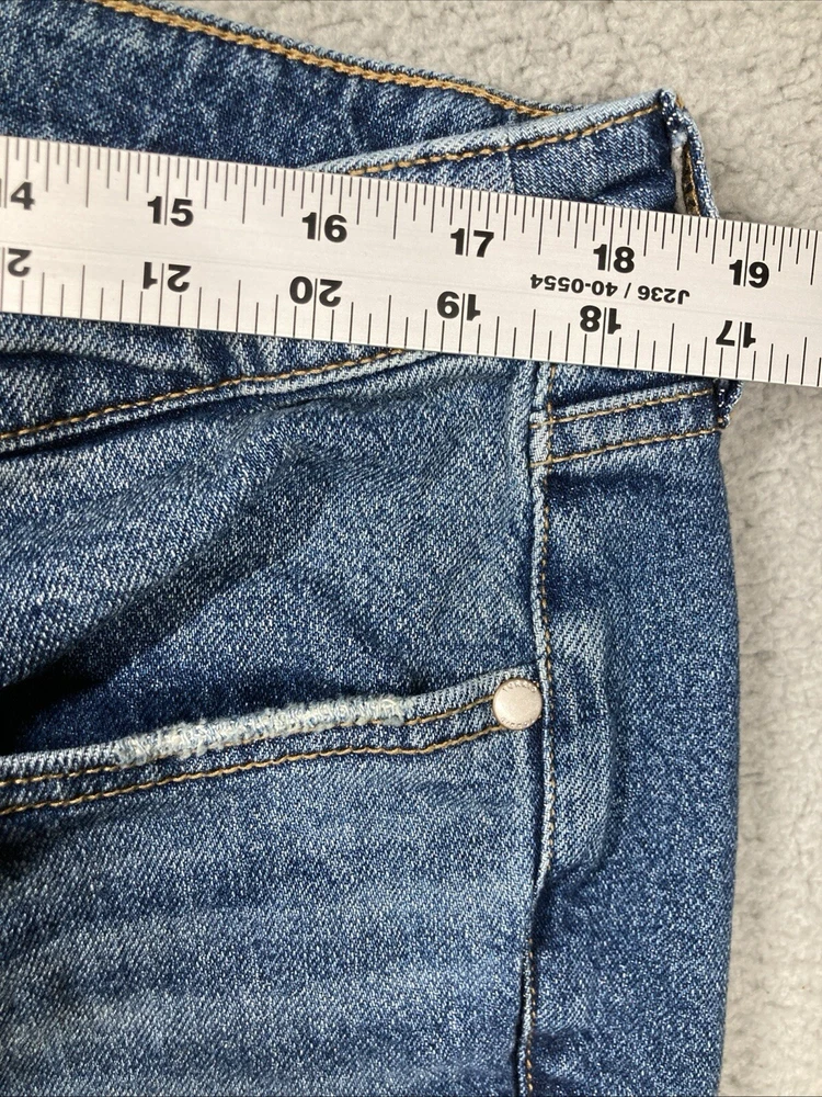 For Sale: Torrid Jeans Womens 14R Blue Button Fly Distressed High Rise Straight Studded Please check photos carefully for details/measurements. Measure your favorite garment and compare. * May be wrinkled upon arrival due to packaging. * This item has been cleaned per eBay policy. We welcome questions and offers! Thank you for taking time to view and consider this item!