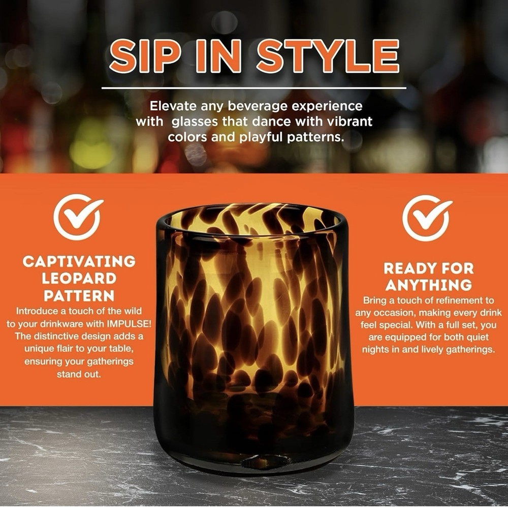 These cocktail glasses are absolutely stunning! The hand-blown design gives each one a unique, artsy touch, and the tortoise theme adds a playful yet elegant vibe. Perfect for entertaining or just sipping your favorite drink at home. The colors pop beautifully, and the quality feels premium—definitely worth the hand wash care. A must-have for anyone who loves stylish glassware!
