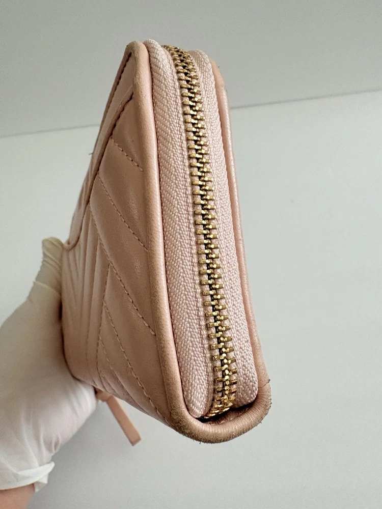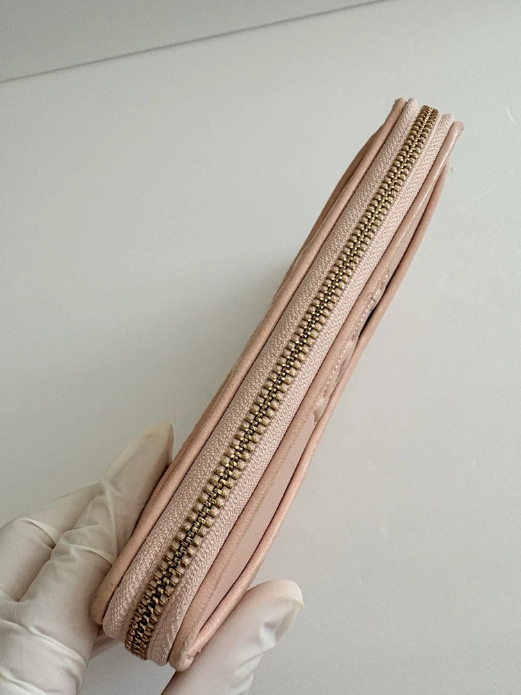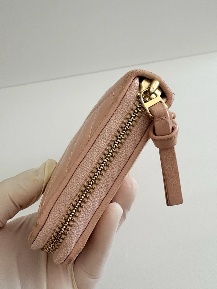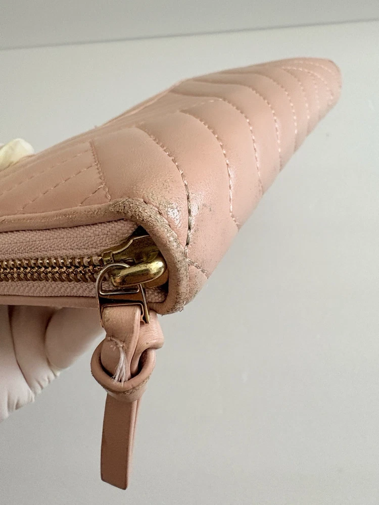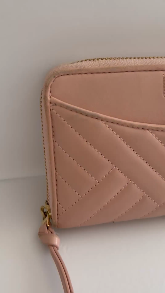 • Zip closure; lined • Exterior slip pocket, two interior slip pockets, interior zip pocket, eight interior card slots • Quilting and stitched logo detailing on exterior • 7.5"W x 1"D x 4.5"H • wallet is in good condition, corners show some use pls watch video before buying! Customer Care Atención al Cliente If you have any questions, feel free to reach out-I'm happy to help! 30-day returns accepted if the item was not accurately described in the listing. Thank you for shopping at Karo's Bags and More-your trusted source for authentic style. Si tiene alguna pregunta, no dude en escribirme-¡con gusto le ayudaré! Aceptamos devoluciones dentro de 30 días si el artículo no tue descrito correctamente en el anuncio. Gracias por comprar en Karo's Bags and More,