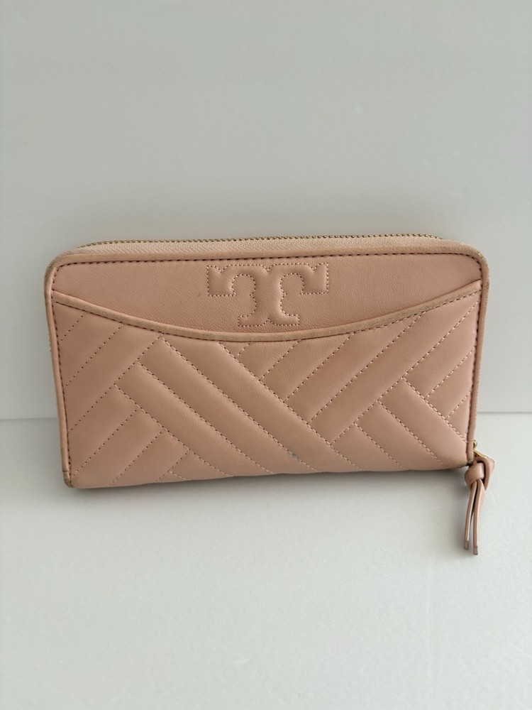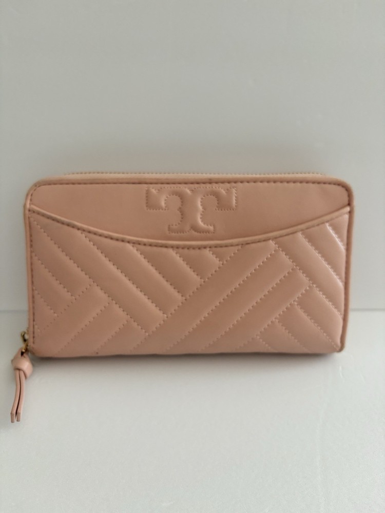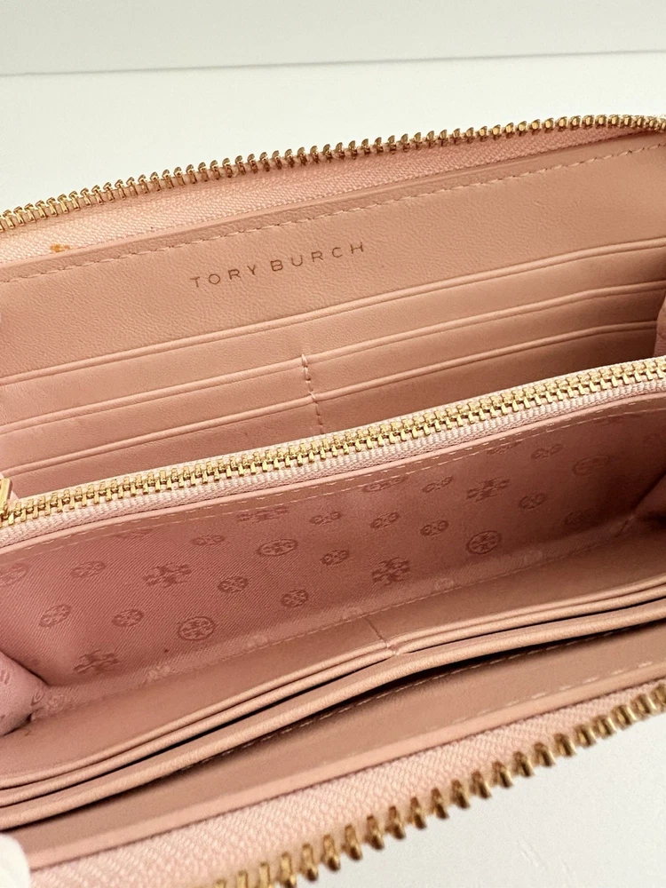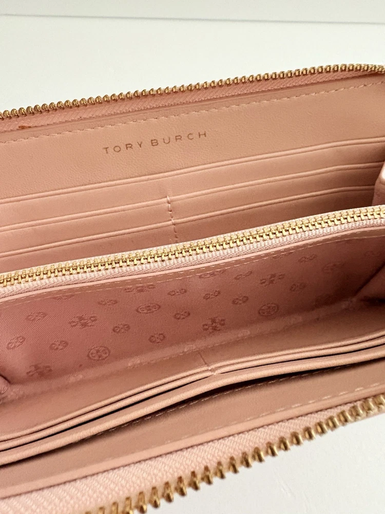 • Zip closure; lined • Exterior slip pocket, two interior slip pockets, interior zip pocket, eight interior card slots • Quilting and stitched logo detailing on exterior • 7.5"W x 1"D x 4.5"H • wallet is in good condition, corners show some use pls watch video before buying! Customer Care Atención al Cliente If you have any questions, feel free to reach out-I'm happy to help! 30-day returns accepted if the item was not accurately described in the listing. Thank you for shopping at Karo's Bags and More-your trusted source for authentic style. Si tiene alguna pregunta, no dude en escribirme-¡con gusto le ayudaré! Aceptamos devoluciones dentro de 30 días si el artículo no tue descrito correctamente en el anuncio. Gracias por comprar en Karo's Bags and More,