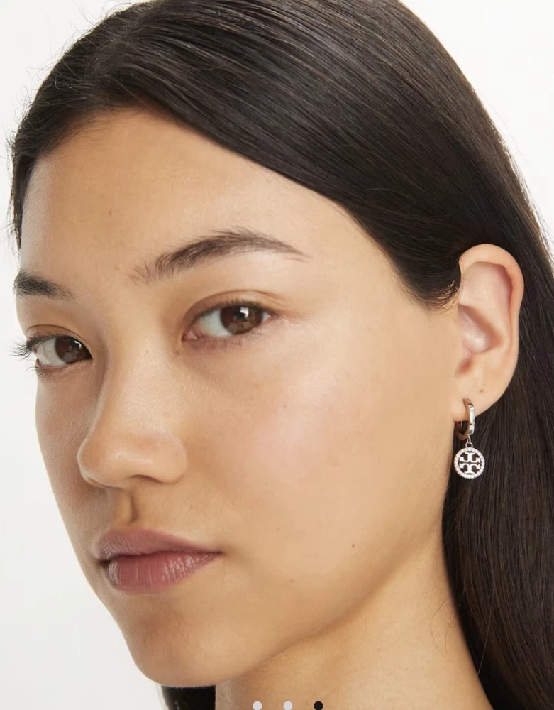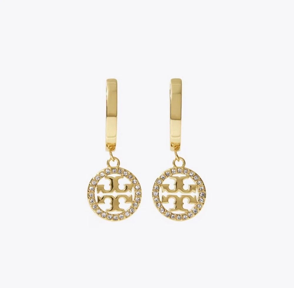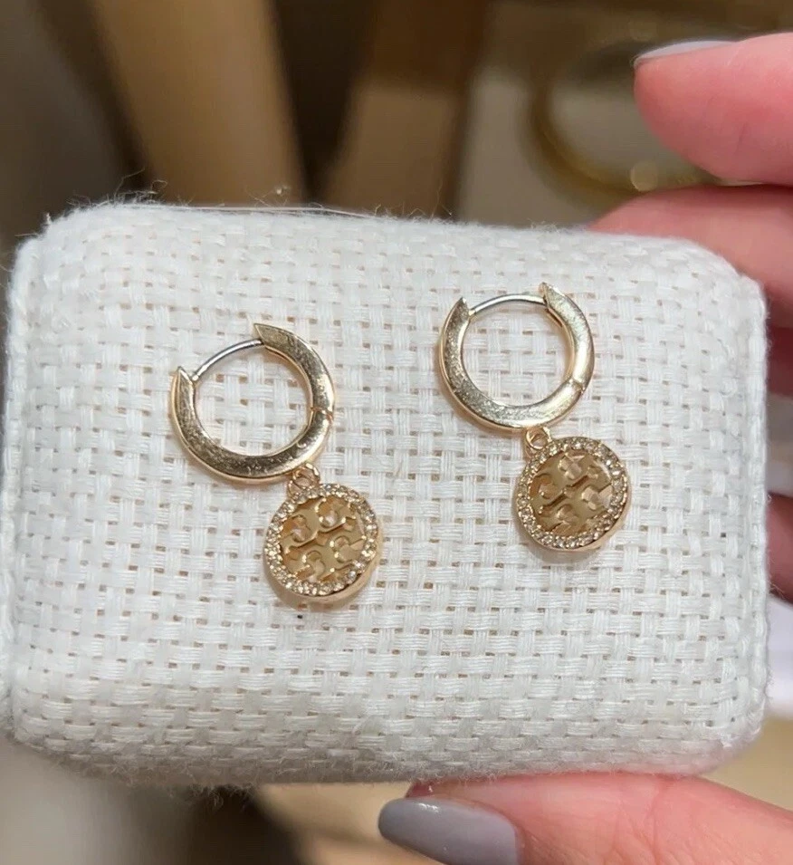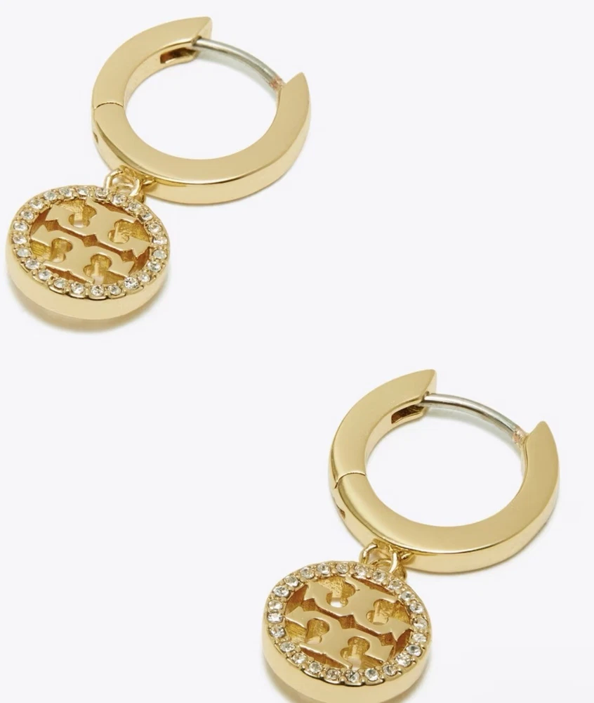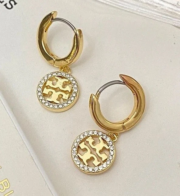 Tory Burch Crystal Lady Earrings Classic Double T Logo Hoop