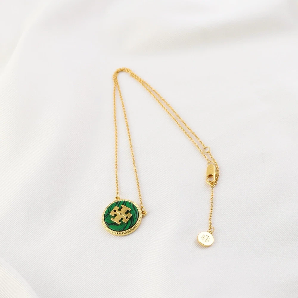 Tory Burch Double T Classic Lady Necklace Simple Elegant Green