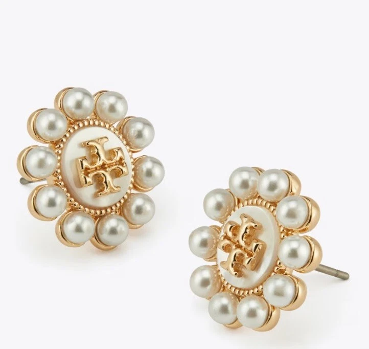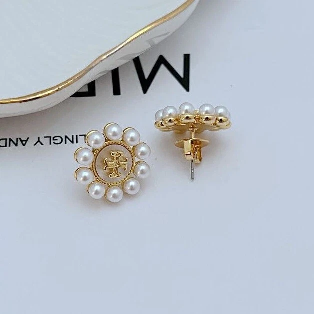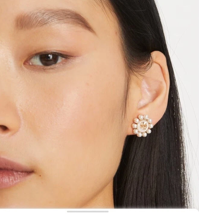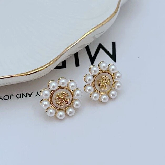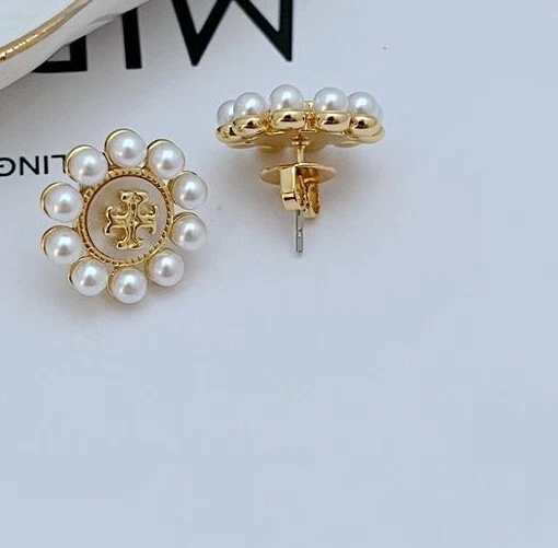 Tory Burch Kira Pearl Flower Stud Earrings Lady Perfect Gift π