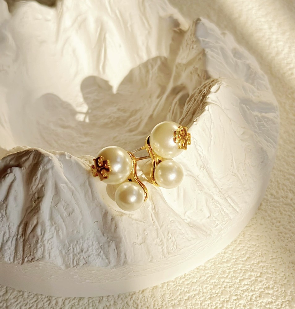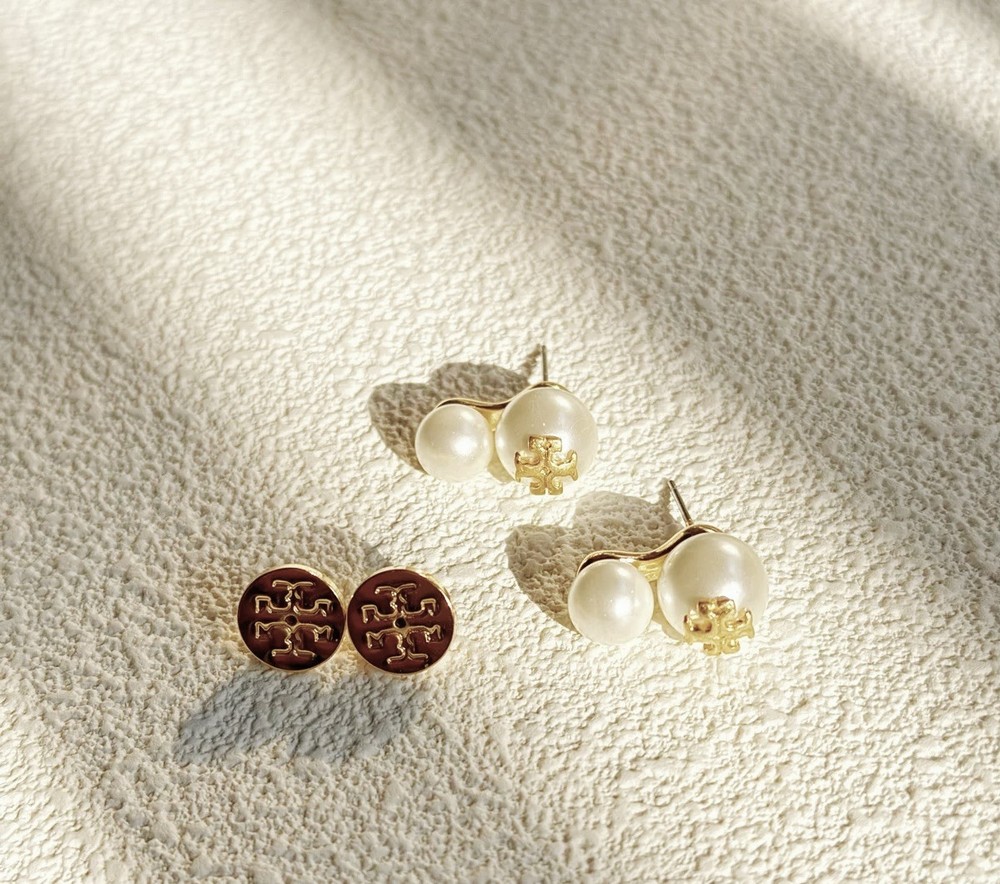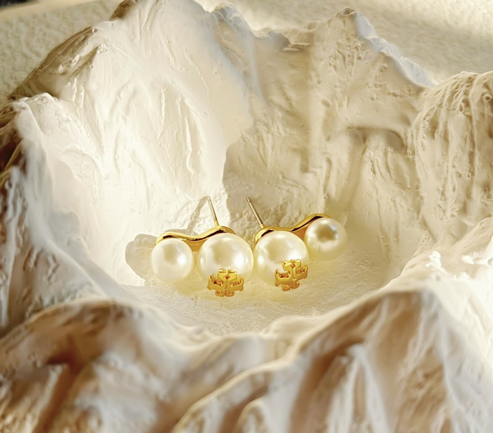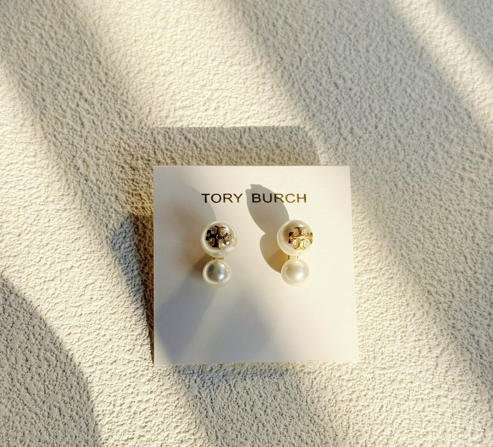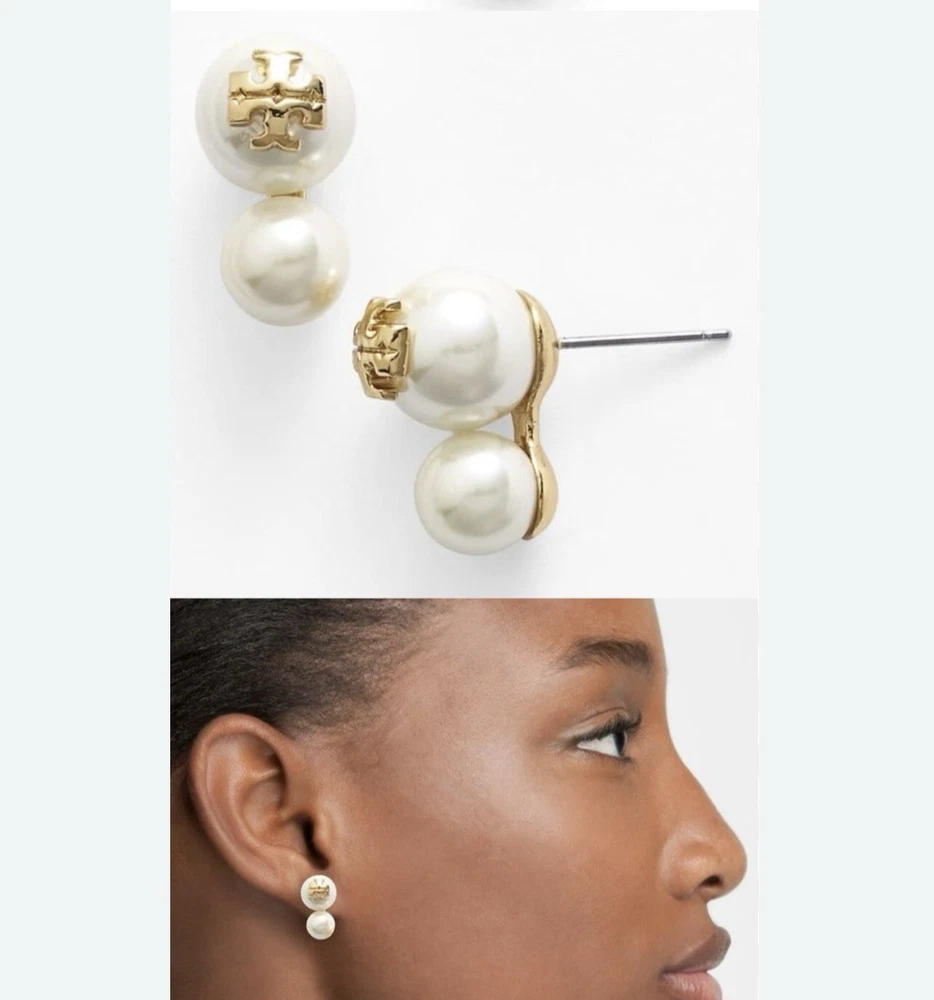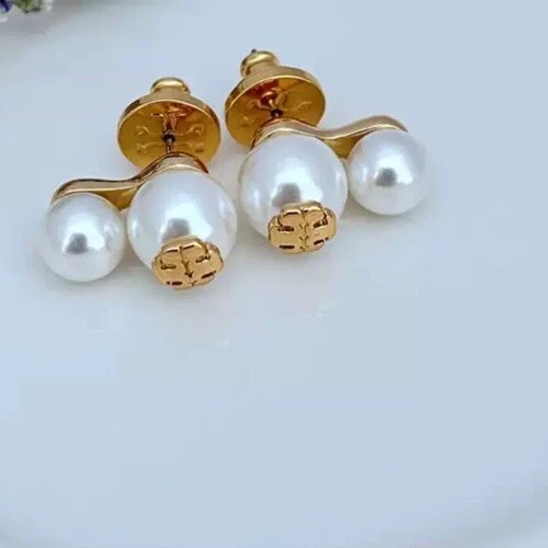 Tory Burch Lady Double Pearl Earrings Classic Double T Logo Stud Perfect Gift