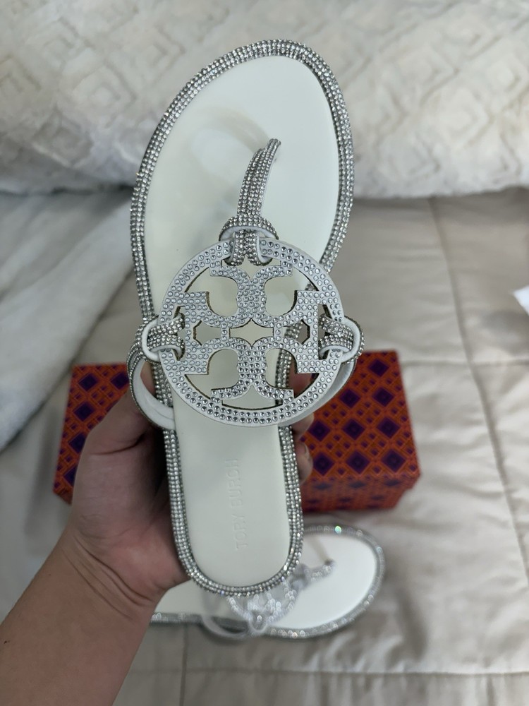 Brand new Tory Burch Miller Crystal Sandals in white ✨ Women’s size 7 (true to size) • New condition • Includes original box • Crystal logo and trim — very eye-catching in person Perfect for summer outfits, vacations, or everyday wear 💸 Price: $100 👉 Open to reasonable offers (can accept $90 for quick sale) 📦 Fast shipping — same day or next business day (Orders placed early may ship within the hour) ✔️ First come, first served ✔️ Ships securely packaged Feel free to message with any questions