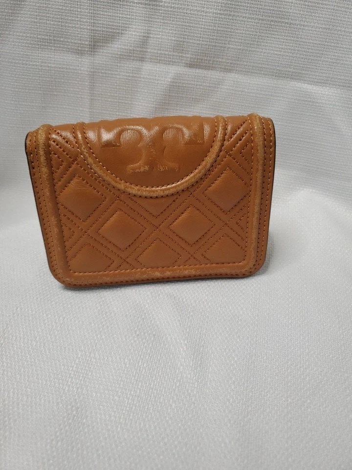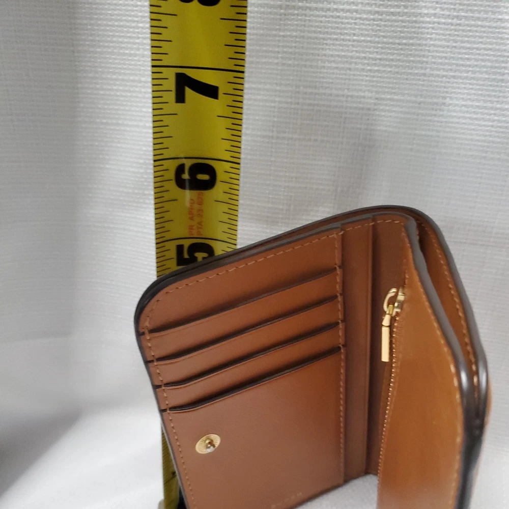 The Tory Burch Nebbiolo Soft Waxed Leather Mini Compact Zip Around Wallet is a stylish and functional accessory for women. Made from high-quality leather in a rich brown color, this wallet features a zip-around closure for secure storage of your essentials. The compact size and clutch style make it perfect for travel, while the Tory Burch branding adds a touch of sophistication to any outfit. With its sleek design and durable construction, this wallet is a must-have for any fashion-forward woman.