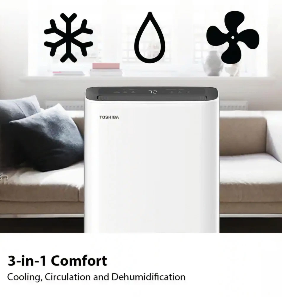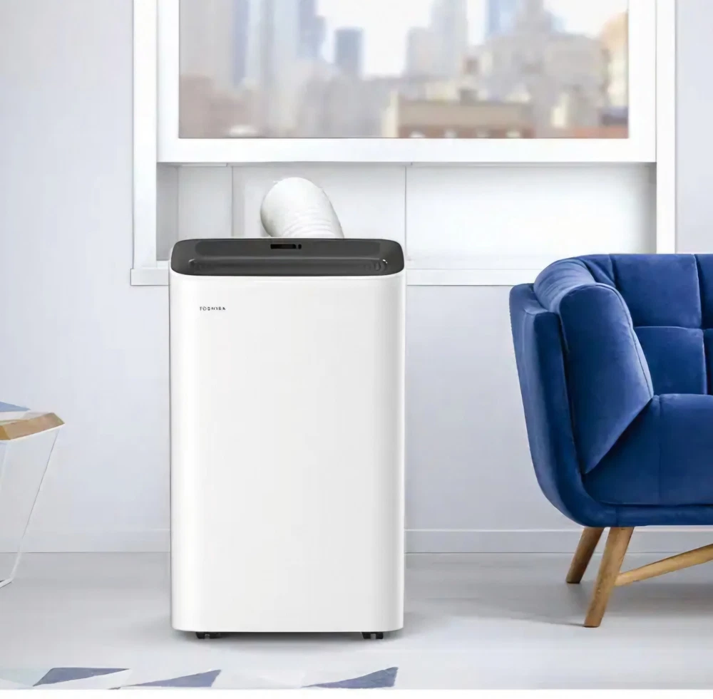 Stay cool and comfortable with the Toshiba PX0611CWRU 8,000 BTU 115-Volt Smart Wi-Fi Portable Air Conditioner. This corded electric air conditioner features 3 cool speeds, a BTU cooling rating of 6000-6999 BTU, and a white color that will blend seamlessly with any home decor. With a timer and sleep mode, this portable air conditioner is perfect for any room in the house. The Toshiba PX0611CWRU also boasts a smart home protocol of Wi-Fi, making it easy to control with your smartphone or voice commands. Enjoy the heatwave-beating cool of this portable air conditioner, perfect for any home improvement project.