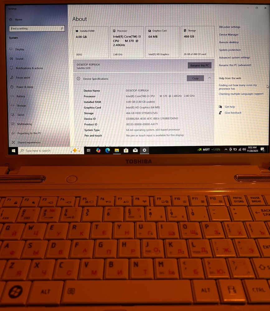 Sold as pictured. Please read full description before purchasing. Used Toshiba Satellite L630 laptop. Originally came with Windows 7; Windows 10 is freshly installed and runs acceptably for basic tasks. Windows is not activated, but the system is fully usable. Condition / Important Notes: ✅ Powers on and runs normally ✅ Includes original power adapter ⚠️ Battery does NOT hold a charge (laptop must be used while plugged in) ⚠️ Windows 10 not activated Cosmetic wear consistent with age (see photos) This is an old machine, expect slower performance Has a DVD drive Good for: Basic web browsing Email Word processing Light everyday use Not recommended for: Gaming Video editing Heavy multitasking