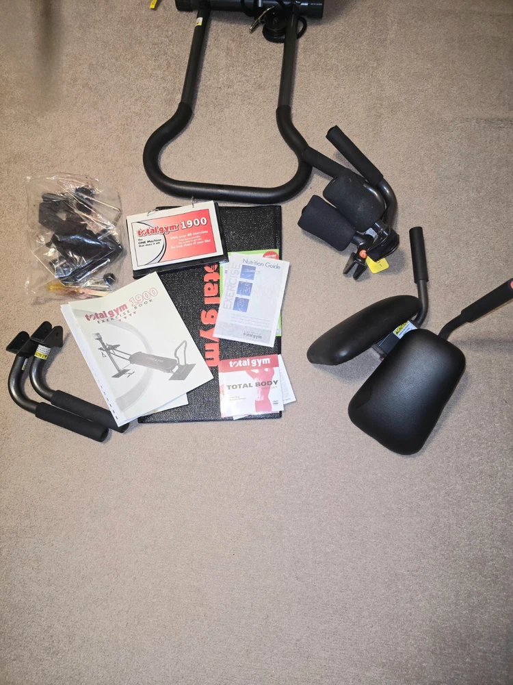 T otal Gym 1900 in Great Condition! The Total Gym 1900, is versatile and designed for all fitness levels. This unit is in excellent condition and includes all the original tools and parts, ensuring you have everything you need for a full-body workout. Key Features: Complete Set: Comes with all original tools and parts. Workout Videos Included: Enhance your fitness routine with guided workout DVDs. Space-Saving Design: Folds easily for convenient storage. Durable Construction: Built to last with high-quality materials. Whether you’re looking to build strength, improve flexibility, or tone your body, the Total Gym 1900 is the perfect addition to your home gym. Don’t miss out on this opportunity to own a top-of-the-line fitness machine at a great price!