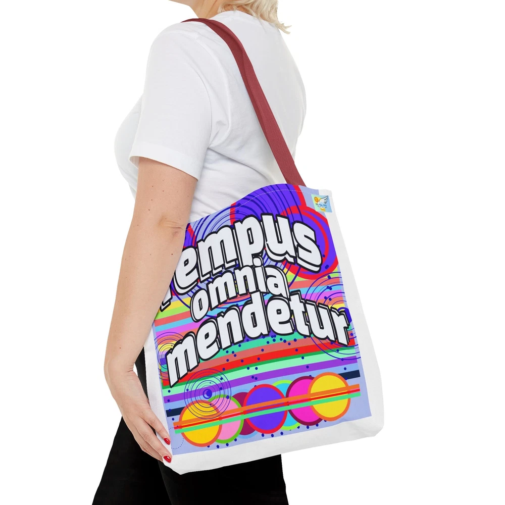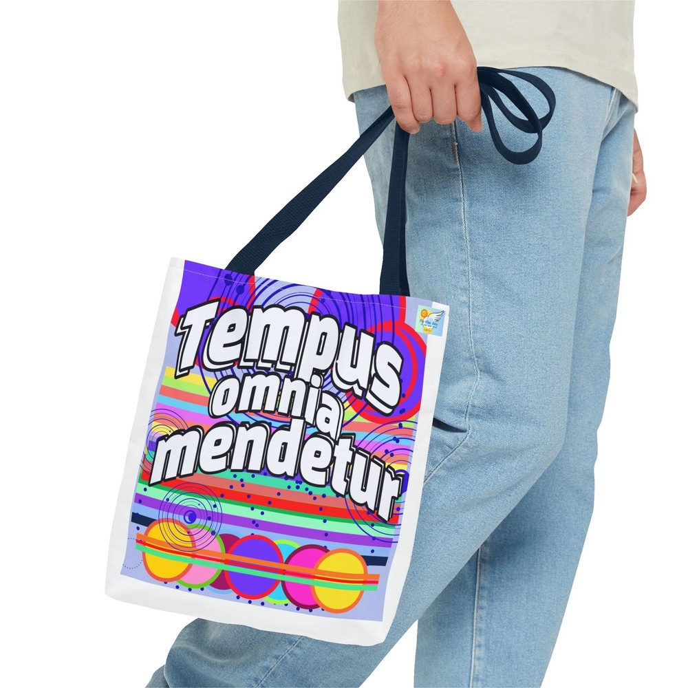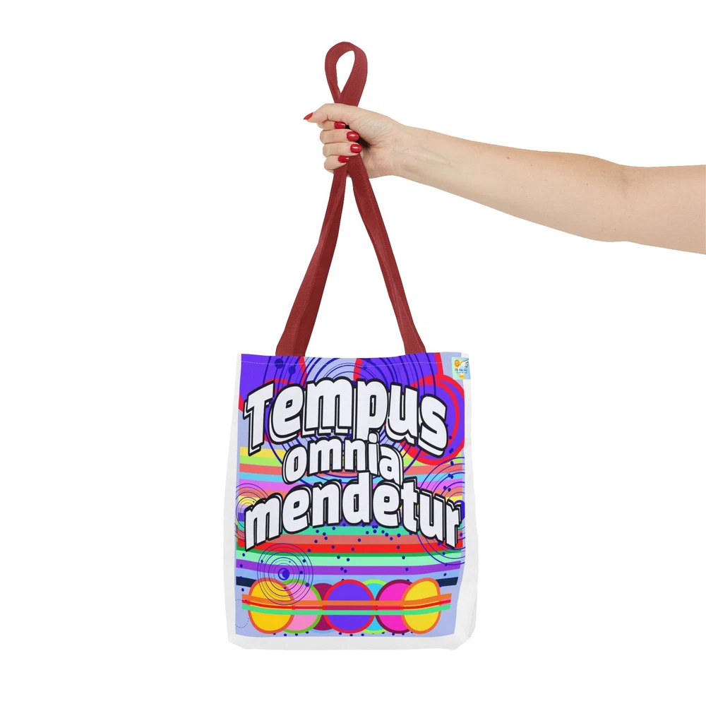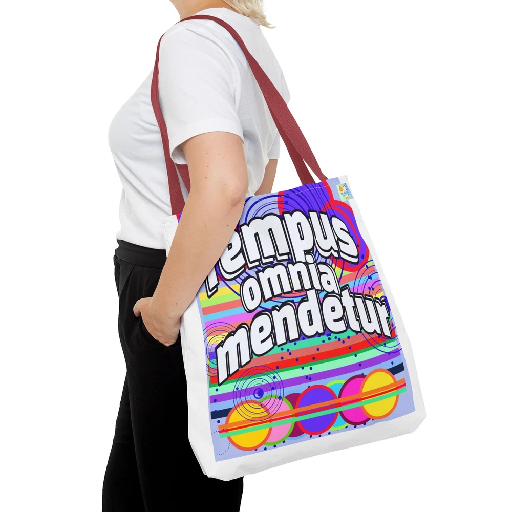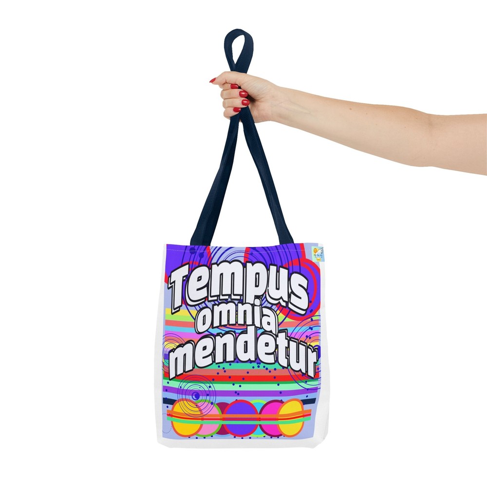 Available in 3 sizes to add both functionality and style, these custom-printed tote bags come with multiple handle colors to match your designs. Made with spun polyester, these bags feature double-stitched seams, cotton webbing straps, and nonwoven laminate lining for high-end durability. Your all-over print is created with dye sublimation for high-end visuals. .: Made with 100% polyester, a medium-weight fabric (6.49 oz/yd² (200 g/m²)) that is highly durable and perfect for everyday use. .: 5 color handle options .: All tote bags come with a non-woven laminate inside, cotton handle, and are available in 3 sizes (1x large storage compartment) so that you can match your customers' needs. .: Please note: Size tolerance ±0.75" (1.9 cm)