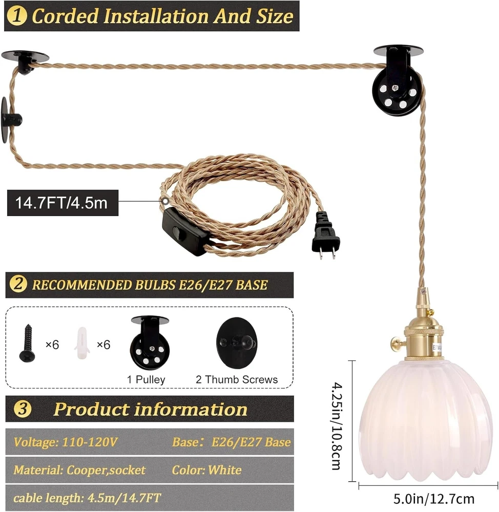 Touch Control Vintage Pendant Light - Adjustable 14.7ft Cord & Retro Glass Shade ‹ › ‹ › ‹ › ‹ › ‹ › ‹ › ‹ › ‹ › ‹ › ‹ › Touch Control Vintage Pendant Light Elevate your home with the exquisite Touch Control Vintage Pendant Light, carefully designed for elegance and ease. This striking light fixture comes with a generous adjustable 14.7ft cord, allowing you to create the perfect ambiance in any room. Product Specifications: Lampshade Dimensions: 5.91"Dia x 4.33"H (15cm x 11cm) Cord Length: 14.7ft Bulb Included: G45, 6W, 2700k Material: High-quality glass & brass socket Certifications: CEC & UL certification Features: Elegant White Tone: A captivating white glass shade that softens light, creating a warm and inviting atmosphere. High-Quality Materials: Blemish-free, color-treated glass with corrosion-resistant and oxidation-resistant metal parts, ensuring durability and aesthetic appeal. Ingenious Design: Easy installation with no complicated wiring; the suspension height is fully adjustable for optimal lighting. Easy Control: Conveniently located switch for effortless operation, ensuring you're always in charge of your lighting. Wide Application: The Vintage Pendant Light is not just a source of illumination; it's an exquisite piece of art that enhances any interior. Whether utilized in a cozy family home, chic restaurant, or trendy café, its retro design harmonizes with a range of decor styles. Pair it with matching wall sconces and ceiling lights to create a perfectly styled vintage space. Package Includes: A Socket A Lampshade A Set of Accessories An E26 Bulb Installation Instructions For those who may find installation challenging, we highly recommend hiring a licensed electrician. To ensure its longevity, always use this pendant light in a dry environment. Illuminate your home with timeless elegance and sophisticated charm – order your Touch Control Vintage Pendant Light today! Shipping Free & Fast Shipping - We offer free shipping to most of the USA with a normal delivery time of 3-7 days. However, due to the current situation, additional delivery time (up to 3 weeks) may be required for some items. Alternative Carriers - We may use alternative carriers (e.g. USPS, FedEx, UPS, etc.) to ensure your package arrives safely and on time. Due to the use of multiple carriers, we are unable to provide a tracking number automatically. Handling Time - Orders are processed and shipped within 1-2 business days of receiving cleared payment. Shipping Restrictions - Shipping to Alaska, Hawaii, Puerto Rico, Guam, and other US territories may incur shipping charges or delivery restrictions. Please contact us before ordering, or your order can be refunded/cancelled. State Restrictions - There may be restrictions based on your state of purchase. For example, certain items may not be shipped to California due to state regulations. Contact for Tracking Updates - If you require tracking updates or have any concerns about the delivery of your order, please feel free to contact us, and we will be happy to assist you. Return 30-Day Hassle-Free Returns - We want you to be completely satisfied with your purchase. If you are not, you can return the item within 30 days of receiving it for a full refund or exchange. Easy Return Process - To start a return, simply contact us and we will provide you with a prepaid return shipping label and detailed instructions. Restocking Fee - There are no restocking fees for returns. However, the buyer is responsible for return shipping costs if the return is not due to a seller's error. Refund Processing Time - Refunds will be processed within 5 business days of receiving the returned item in its original condition. Payment We accept all major credit cards, PayPal, and Apple Pay for your convenience. Your payment information is secure and encrypted to ensure a safe and seamless transaction. Please complete your payment within 3 days of purchase to avoid any delays in shipping. Feedback Your feedback is extremely important to us. We strive to provide the best products and customer service possible. If you are satisfied with your purchase, please take a moment to leave us a positive review. If you have any concerns or issues with your order, please contact us before leaving negative feedback. We are committed to resolving any problems and ensuring your satisfaction. Contact Us If you have any questions or concerns, please feel free to reach out to our customer support team. You can contact us through the eBay messaging system. We are available Monday to Friday, 9:00 am to 5:00 pm EST, and we will do our best to respond to your inquiry within 24 hours. Buy it now and enjoy a pleasant shopping experience! UPC: Not Set Lumens: Not specified Item Height: Not Set Item Length: Not Set Item Weight: 3.36 pounds Item Width: Not Set Power Consumption: 6 watts Unit Quantity: 1 Material: Brass,Glass Room: Bedroom,Kitchen,Living Room,Island Light Color: Warm White Features: Corded,Touch Department: Unisex Baby & Toddler,Kids,Teens,Adults Control Style: Touch Occasion: Anniversary,Baby Shower,Bachelorette Party,Bachelor Party,Back to School,Baisakhi,Bar Mitzvah,Beach Party,Best Wishes,Birth & Baby,Birthday,Breast Cancer Awareness Month,Bridal Shower,Business Gift,Casual,Christmas,Clubwear,Communion,Communion & Confirmation,Congratulations,Easter,Engagement,Fall,Father of the Bride,Housewarming Light Direction: Downwards Labels & Certifications: Not Set Brand: Unbranded Type: Pendant Sensor Type: None Style: Vintage/Retro Lighting Technology: Electric Color: Tulip White Finish: Painted Number of Settings: 1 Shade Shape: Round Power Source: AC Installation Area: Indoor Energy Star: Not Set LED String/Strip Type: Not Set MPN: Not Set EC Range: Not Set Manufacturer: Not Set Item Diameter: 7.87 in Voltage: 110 V Year Manufactured: Not Set Number of Lights: 1-3 Amperage: Not specified Country/Region of Manufacture: Not Set Output Voltage: Not specified IP