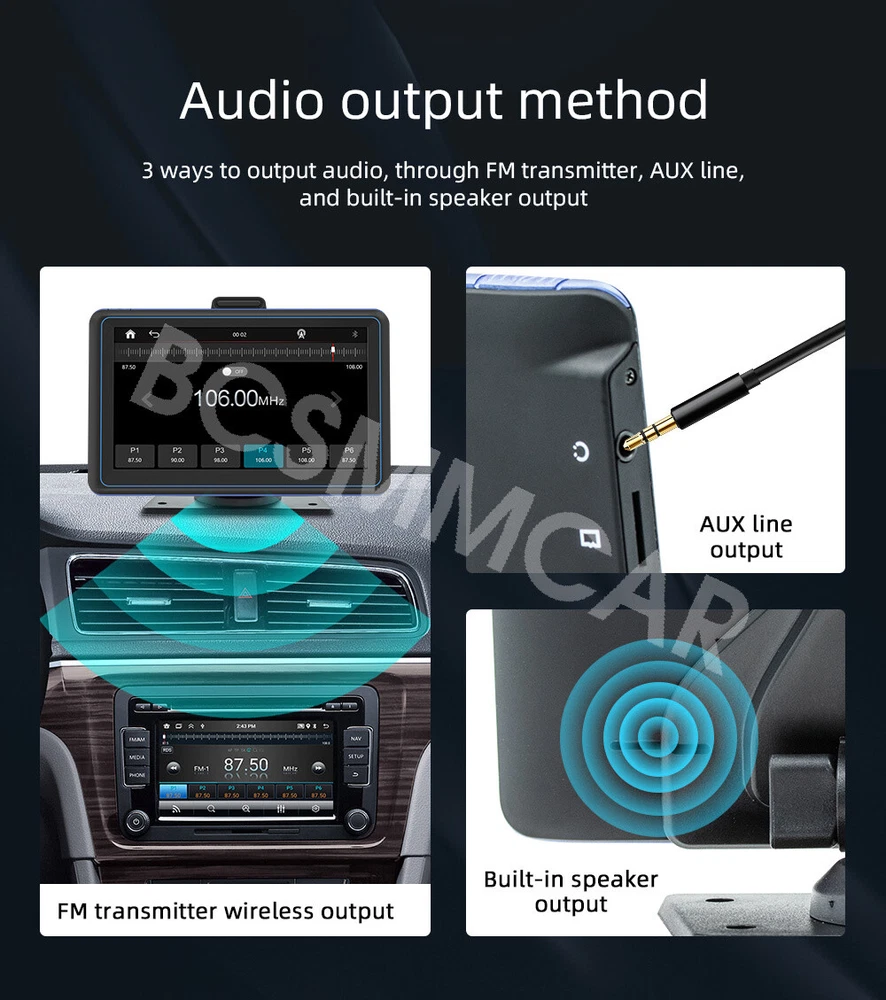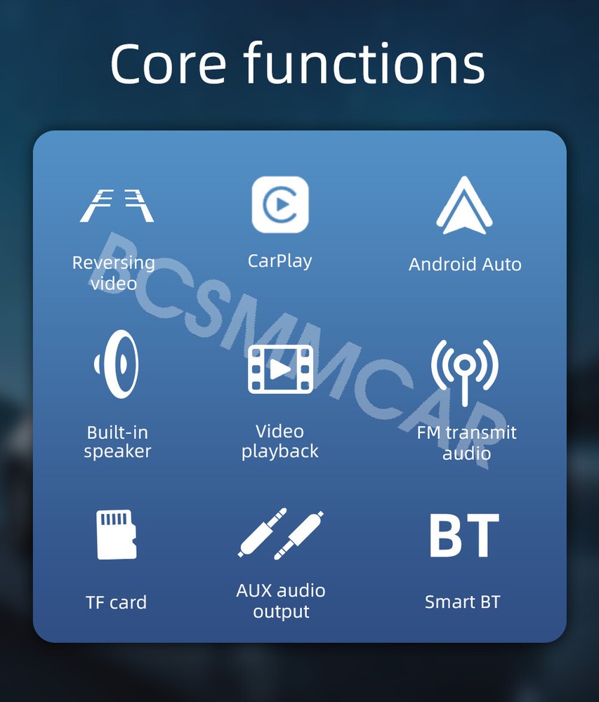 Product View Detail Portable 7in Car Radio Multimedia Video Player Wireless Carplay Android Touch Screen Car Stereo With 4LED Rear Camera Add our listing to Watchlist Or Add to Cart , you will get more discount Basic parameters Type: Portable Car MP5 System:wide Melis system Software solution: F133 Radio transmission frequency: 87.50-108MHz Radio and transmission IC: AB5301B Power amplifier IC: NS4250 Output power:Built in 1W speaker for Working voltage:12-36V Working temperature: -10~60 ℃ Bluetooth version: 5.0 (default name: SWL-BT) CPU: F133 Running memory: 1Gbit DRAM Display resolution: 1024x600 Screen size: 7 inches Installation size: 120x67MM Shell size: 184x115mm Host depth: 13MM Functional parameters Reverse image: support Video playback warning: support Built in speaker: support Reset key: support TF card: support Audio output: support (3.5MM) Reverse video input: support (2.5mm) Audio format: MP3/AAC/APE/OGG/M4A/RA/WAV Video formats: H263/H264/H265/DIVX HD/AVI/FLV/MKV/MPEG/MP4/WMV9/VC/ASF/TS/QT Image format: JPEG/PNG/BMP/GIF/TIFF Language parameters:English, Chinese, Spanish, Portuguese, Russian, German, French, Polish, Türkiye, Arabic, Hebrew, Italian, Czech, Japanese, Korean Factory Set Password: 113266 Accessories 1. Host 2. Manual 3. Special cigarette lighter power cord 4. Installation bracket 5. Reverse video cable 6. AUX audio adapter cable (accessories, manual, and packaging may be updated from time to time, subject to actual receipt) 7. 4LED camera Basic functions 1. Radio frequency transmission function (set the receiving frequency point of the original car radio to be consistent with the selected frequency point of the machine, and the audio signal of the machine can be amplified and output to the speaker through the original car radio)" 2. Card reading (audio/video/pictures) 3. Bluetooth function 4. Wireless Android AUTO/Apple CarPlay 5. Reverse view function (Included 4LED camera) 6. Audio output function Shipping Policy Payment Method Returns Policy Shipping Policy Payment Method Returns Policy Copyright © 2017 DataCaciques Home Payment Shipping About us Contact us BCSMMCAR Store Categories Store Categories Other Product View Detail Portable 7in Car Radio Multimedia Video Player Wireless Carplay Android Touch Screen Car Stereo With 4LED Rear Camera Add our listing to Watchlist Or Add to Cart , you will get more discount Basic parameters Type: Portable Car MP5 System:wide Melis system Software solution: F133 Radio transmission frequency: 87.50-108MHz Radio and transmission IC: AB5301B Power amplifier IC: NS4250 Output power:Built in 1W speaker for Working voltage:12-36V Working temperature: -10~60 ℃ Bluetooth version: 5.0 (default name: SWL-BT) CPU: F133 Running memory: 1Gbit DRAM Display resolution: 1024x600 Screen size: 7 inches Installation size: 120x67MM Shell size: 184x115mm Host depth: 13MM Functional parameters Reverse image: support Video playback warning: support Built in speaker: support Reset key: support TF card: support Audio output: support (3.5MM) Reverse video input: support (2.5mm) Audio format: MP3/AAC/APE/OGG/M4A/RA/WAV Video formats: H263/H264/H265/DIVX HD/AVI/FLV/MKV/MPEG/MP4/WMV9/VC/ASF/TS/QT Image format: JPEG/PNG/BMP/GIF/TIFF Language parameters:English, Chinese, Spanish, Portuguese, Russian, German, French, Polish, Türkiye, Arabic, Hebrew, Italian, Czech, Japanese, Korean Factory Set Password: 113266 Accessories 1. Host 2. Manual 3. Special cigarette lighter power cord 4. Installation bracket 5. Reverse video cable 6. AUX audio adapter cable (accessories, manual, and packaging may be updated from time to time, subject to actual receipt) 7. 4LED camera Basic functions 1. Radio frequency transmission function (set the receiving frequency point of the original car radio to be consistent with the selected frequency point of the machine, and the audio signal of the machine can be amplified and output to the speaker through the original car radio)" 2. Card reading (audio/video/pictures) 3. Bluetooth function 4. Wireless Android AUTO/Apple CarPlay 5. Reverse view function (Included 4LED camera) 6. Audio output function Shipping Policy Payment Method Returns Policy Contact US Shipping Policy All items will be checked before packing. All items are new and of high quality. Item will be shipped within 1 business days upon receipt of payment, excluding weekends and public holidays. If to USA,we will ship your order by USPS,it will take about 8-12 working days to you,and you can track it on line. If to other country,we will ship your order by China Post or Singapore Registered Air Mail,it will take about 14-21 working days to you,you aslo can track it on line. Delivery time is about 14-28 business days and it may take up to 8 weeks . Payment Method We accept payment by PayPal only ! Payment should be completed within 5 days after buyer places the order,or else an unpaid case will be opened in order to cancel the transaction. If you can not pay in time, please contact us. e-check from PayPal will only be processed once the payment clears. All of the items will be shipped to buyer's EBAY address,please confirm your address on Ebay before you buy.Your order will be usually shipped out the same or next business days once the payment is made and cleared. Returns Policy 30-day Warranty with Exchange for defective, malfunctioned, incorrect or parts-missing items. Please notify us and return the item with all parts and accessories packed and marked "FOR EXCHANGE" within 14 days of receipt. If defective, malfunctioned or parts-missing items are no longer available, a refund may be issued. All returning postage costs will be the responsibility of the buyers under all circumstances. Contact US If you encounter any problems about anything, please feel free to contact us and we will do our best to assist you solve the issue. If you are not satisfied in anyway, please feel free to let us know and give us a second chance to correct it before you decide to leave 