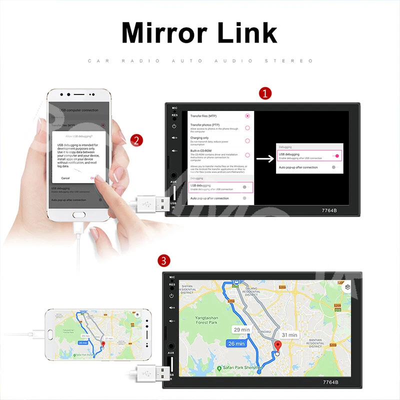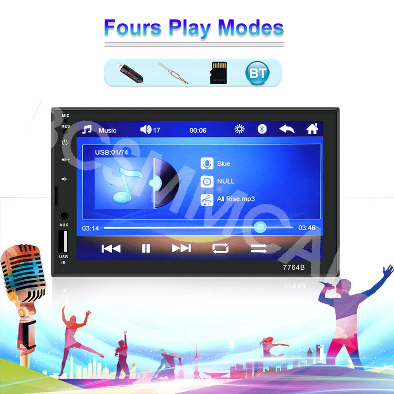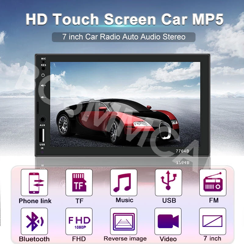 7 Inch Double 2 DIN Stereo Radio Car MP5 Player Bluetooth Touch Screen Audio Feature: Main product function:Mirror Link+ capacitive touch screen + aux Product parameters: Product model: SWM-7764B Type: Touch MP5 Decoding chip: quanzhi c2005 System: WINCE Screen size: 7 in Net product weight: about 500g 1024 * 600 screen resolution Mobile phone interconnect: bidirectional interconnect from android and iPhone version below 8P support Radio chip: QN8035 Amplifier chip: TDA7388 Audio frequency (band): fm 87.5 m-108 m (fm1 / fm2 / fm3) Bluetooth: Bluetooth 4.0 version SD card slot: TF memory card Standby time: support Mobile phone charging: support most mobile phones Steering wheel control (original car): support Button light: seven colors Playback mode: usb card / tf / aux / bluetooth 4.0 (password: 0000) USB interface: 2.0 interface to play music / video / images Flipping image: support (requires optional camera) Output terminal: 2 channels of audio output, 1 way of reverse input, 1 channel of video input, 2 channels of video output Image format: jpg / gif Audio format: mp3 / wma / wav / flac Video format: rm / rmvb / avi / mp4 / mkv / 3gp (with resolution less than 720 p) Product size: 178mm * 102mm * 60mm Language: support Chinese / English / Spanish / Portuguese / Russian / Italian / German / French / Polish / Turkish and 24 other languages Machine list: Host * 1, Power cord * 1, Manual * 1, Remote control * 1(The remote control battery (not included): CR2025 3V)