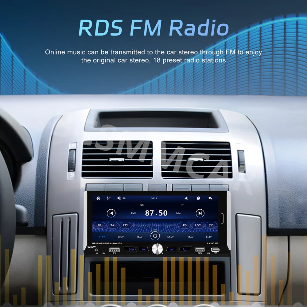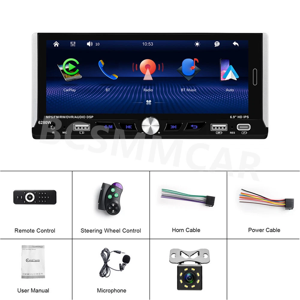 Product View Detail 1 Din Car Stereo MP5 Player Car Radio 6.9 Inch Multimedia Player Carplay Android Auto Bluetooth Screen Mirroring USB With 8LED Rear Camera Kit Note:Please check your car with radio's size !!! Features: ●Wireless Carplay: You can choose wireless connection to carplay, connect to Apple mobile phone, access mobile phone address book, mail, notification, map navigation, music, video and other information, and realize voice control. ● Android auto: The Android auto car system can closely integrate the user's Android phone and player, and realize navigation, make calls, send and receive information, listen to music and other operations through data cable connection. ● 6.9-inch high definition 2.5D IPS touch screen, dynamic menu interface. ● Mirror Link: Support Android/ Iphone Mirror Link through phone's original USB line synchronized to the on-board screen. ●Steering wheel control: Support steering wheel button learning function, through it you can control the functions that you need by steering wheel, more convenient. ● Hardware electronic sounds (EQ) processing, multiple EQ modes, treble and bass can be adjusted. ●FM/RDS radio with high-quality stereo, which can search channels in full-automatic ways,semiautomatic way and acurate adjustment way;Listen to music, newsletters and traffic information anytime, anywhere. ●Power off memory function: The player can automatically remember the playing state when power off (shutdown), and when it is restarted, it will automatically remember the previous music or radio playing state ● Built-in Bluetooth function, can connect with mobile phone, and support hands-free calling, phone book download. ● Support large memory TF card / U disk to store songs, you can download your favorite music or movies to play on this unit. ●Multi-function USB &TYPE-C port:allow you to connect your devices and enjoy your favorite music, videos, and photos. You can also charge your devices using the ports while driving. The ports support various formats and are easy to use. ● Colorful backlight settings, colorful backlights of the key can change automatically ●Rear view camera input function: if connect to a car backup camera, the car stereo monitor will turn to rear view reversing details automatically Specifics Model: 6280 Voltage:DC12V System:WINCE CPU Chip: F133 Screen size: 6.9'' screen Screen resolution: 1280*480 Mirror link:Support Radio Band:FM/RDS Radio Chip:QN8035 Power output:45W*4 Work temperature: -10~60℃ Bluetooth Version: 5.0 Bluetooth Name:CAR BT Colorful backlight: Support Reversing input: CVBS Power amplifier chip:TDA7388 Radio frequency:87.5-108MHz Audio format:MP3/WMA/WAV/APE/FLAC Video format:RM/RMVB/AVI/MP4/MKV/3GP Picture format: JPG BMP PNG language: English/Chinese/Spanish/Portuguese/Russian/Italian/German/French/Turkish/Czech/Arabic/Polish/Hebrew Package Included: 1 x Car MP5 Player 1 x Power Cable 1 x Horn Cable 1 x Accessories 1 x MIC 1 x Steering Wheel Control 1 x User manual 1 x 8LED Rear Camera Shipping Policy Payment Method Returns Policy Shipping Policy Payment Method Returns Policy Copyright © 2017 DataCaciques Home Payment Shipping About us Contact us BCSMMCAR Store Categories Store Categories Other Product View Detail 1 Din Car Stereo MP5 Player Car Radio 6.9 Inch Multimedia Player Carplay Android Auto Bluetooth Screen Mirroring USB With 8LED Rear Camera Kit Note:Please check your car with radio's size !!! Features: ●Wireless Carplay: You can choose wireless connection to carplay, connect to Apple mobile phone, access mobile phone address book, mail, notification, map navigation, music, video and other information, and realize voice control. ● Android auto: The Android auto car system can closely integrate the user's Android phone and player, and realize navigation, make calls, send and receive information, listen to music and other operations through data cable connection. ● 6.9-inch high definition 2.5D IPS touch screen, dynamic menu interface. ● Mirror Link: Support Android/ Iphone Mirror Link through phone's original USB line synchronized to the on-board screen. ●Steering wheel control: Support steering wheel button learning function, through it you can control the functions that you need by steering wheel, more convenient. ● Hardware electronic sounds (EQ) processing, multiple EQ modes, treble and bass can be adjusted. ●FM/RDS radio with high-quality stereo, which can search channels in full-automatic ways,semiautomatic way and acurate adjustment way;Listen to music, newsletters and traffic information anytime, anywhere. ●Power off memory function: The player can automatically remember the playing state when power off (shutdown), and when it is restarted, it will automatically remember the previous music or radio playing state ● Built-in Bluetooth function, can connect with mobile phone, and support hands-free calling, phone book download. ● Support large memory TF card / U disk to store songs, you can download your favorite music or movies to play on this unit. ●Multi-function USB &TYPE-C port:allow you to connect your devices and enjoy your favorite music, videos, and photos. You can also charge your devices using the ports while driving. The ports support various formats and are easy to use. ● Colorful backlight settings, colorful backlights of the key can change automatically ●Rear view camera input function: if connect to a car backup camera, the car stereo monitor will turn to rear view reversing details automatically Specifics Model: 6280 Voltage:DC12V System:WINCE CPU Chip: F133 Screen size: 6.9'' screen Screen resolution: 1280*480 Mirror link:Support Radio Band:FM/RDS Radio Chip:QN8035 Power output:45W*4 Work temperature: -10~60℃ Bluetooth Version: 5.0 Bluetooth Name:CAR BT Colorful backlight: Support Reversing input: CVBS Power amplifier chip:TDA7388 Radio frequency:87.5-108MHz Audio format:MP3/WMA/WAV/APE/FLAC Video format:RM/RMVB/AVI/MP4/MKV/3GP Pi