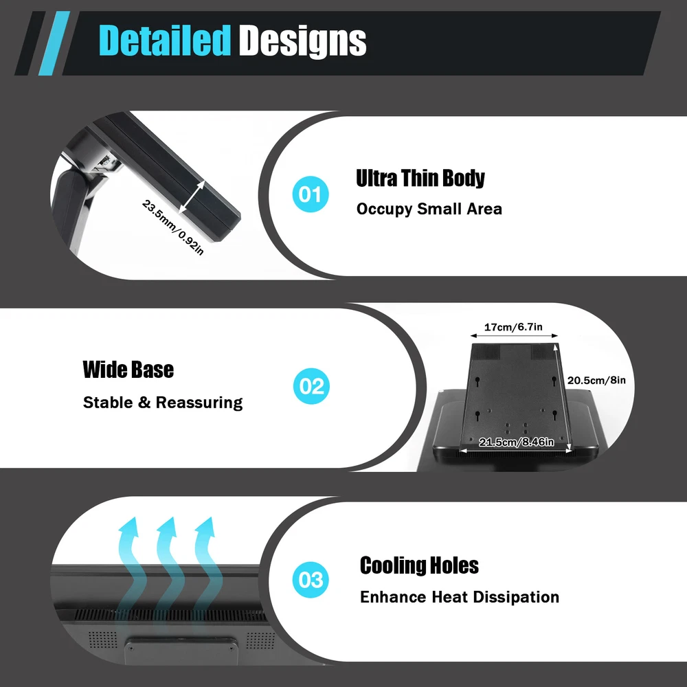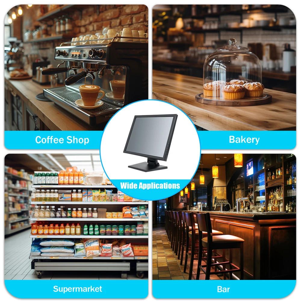 Description Are you still using an old button-operated cash register, feeling a headache due to its blurry small screen and complex button operations? Let our LCD touch screen monitor take you into a more advanced and technological world! The 17-inch touchable screen allows you to engage in various cash and sales activities like using a mobile phone, bringing you an unparalleled convenient experience. It will be the secret to making your store more efficient, a tool to improve your work efficiency, and a helper that every store should have! Details Ultra Thin Body: The 0.92in ultra-thin shape not only makes its overall appearance more elegant but also occupies a small area, making it very suitable for placing on the front desk of a store. Carefully Designed Base: The large base(6.7/8.46*8in) makes it more stable, and anti-slip pads at the bottom also provide double protection for its stability. The reserved suspension holes also allow for a wider range of installation methods to meet the needs of more stores. Heat Dissipation Hole: The large area of heat dissipation hole at the top can effectively enhance the heat dissipation performance of the product, thereby ensuring the smooth and normal operation of the display screen.