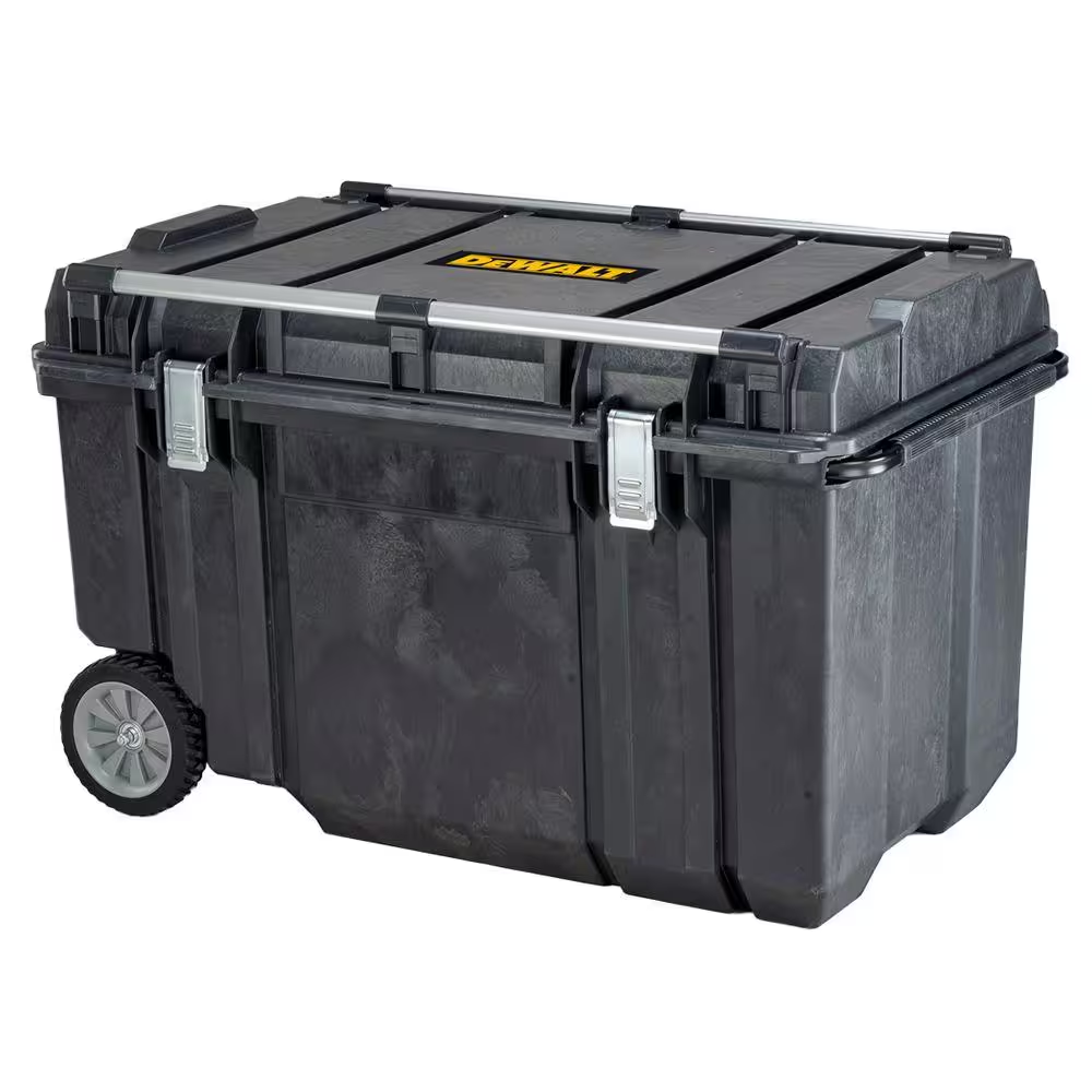 HOME Feedback Save Seller Newsletter Contact us Tough Chest 38 in. W 63 Gal. Polypropylene Rolling Tool Box Description 23.1 inches x 38.9 inches x 24.3 inches. Weight: 35.728 lb Color Family Black Color/Finish Black Features Lid Strike,Lockable Holding Capacity (cu in) 21835 cu in Included Accessories No Additional Items Included Material Polypropylene Product Weight (lb) 35.728 lb Returnable 90-Day Tool Box Type Rolling Tool Box Tool Storage Product Type Rolling Tool Box Maximum Handle Length (in) 9 in Product Depth (in) 38.9 in Product Height (in) 24.3 in Product Width (in) 23.1 in Large portable rolling tool chest with wheels and 154 lb capacity Waterproof and built-in support on lid for additional top loading 7 in. rubber wheels so one person can easily transport The DEWALT DWST38000 63 Gal. Tough Chest is ideal for getting your larger tools and equipment to the jobsite. This chest is designed with 7 in. rubber wheels so one person can easily transport heavy loads. The top of this chest features metal rails that allow for extra storage options. Payment PayPal is our preferred method of payment. If you do not have a PayPal account, all major credit cards are gladly accepted through PayPal as the payment processor. PayPal offers great buyer and seller protection. Your order will be processed pending receipt of cleared payment through PayPal. Sales tax may be charged depending on your location. Shipping We provide Free and Fast shipping. Most items are shipped within 3 business days of receiving cleared payment. We ship to the lower 48 contiguous United States only. We do not ship to P.O. boxes or APOs. We are always working hard to ensure your package arrives as soon as possible. Please understand that some factors like weather, high postal traffic, and the performance of shipping companies are outside of our control. (We ship the product from multiple warehouses). Returns We offer a 30-day return/exchange policy for most of our products. You can request a refund if you are dissatisfied for any reason with your product. (Restocking Fee May Apply). Only factory defects are accepted as a reason for a return. In the case of factory defects, if available, we will replace the product for you. When returning an item, it must be in all of the original packaging and include all of the original accessories or items that came with it. The item and package should be in original and perfect condition. All returns MUST be done within 30 days of the date of purchase. Please note that we cannot give refunds or replacements after the 30-day limit has expired. We are extremely fair, and in the rare event of something out of the ordinary happening with our products or shipping, we will gladly work with you to find a fair resolution. Feedback Feedback on eBay is a very important part of our Business as it is the feedback that we receive from our customer which shows any potential new customer that we are a trusted, friendly, efficient and proactive company. If for any reason you are not happy with your experience with salma-antique contact us and there is not issue large or small that we cannot try and resolve. We are all human and can make a mistake but it is how you fix that mistake that counts. Please give us that chance to sort it out before leaving a negative feedback. If you do not contact us about any issues you have we cannot resolve it. Please leave us positive feedback and all "5's" on the DSR, if you are happy with our service and product as this is what improves all Ebay sellers to provide the experience that all buyers want. Contact Us Click here to Contact Us