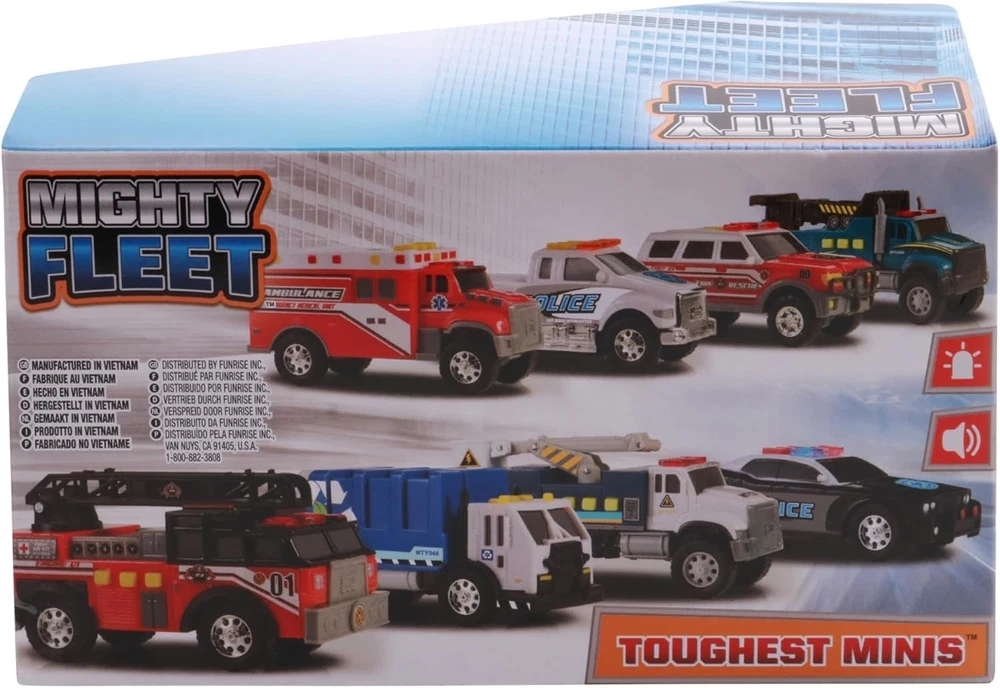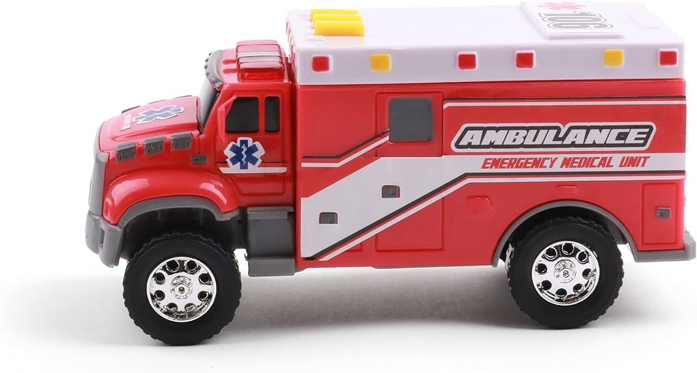 INCLUDES: 5β hyper lights and realistic sounds! READY TO PLAY: Includes 2 AA batteries. KID FRIENDLY: Appropriate for ages 3 and up. ACTION: Toughest Minis Tough Cab Ambulance is ready for action! Power Source Battery Powered Additional Features Flashing Light, Realistic Sound Operation Mode Manual Battery Description Alkaline Are Batteries Required Yes Number of Batteries Toy Vehicle Form Ambulance Color Red Theme Item Weight 0.2 Pounds Size 3.5 x 7 x 5 inches Item Dimensions 7 x 3.5 x 5 inches Material Type Brand Name Mighty Fleet Age Range Description Kid Model Name Toughest Minis Batteries are Included Yes Included Components Battery Number of Items 1 Manufacturer Maximum Age (MONTHS) 96.0 Manufacturer Minimum Age (MONTHS) 36 Model Number 57106 UPC ASIN B0BDRCH1DB Item Type Name Toy Vehicle Item Height 5 inches 021664571064 Plastic Ambulance 2 AAA batteries required. (included)