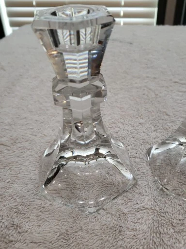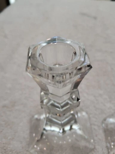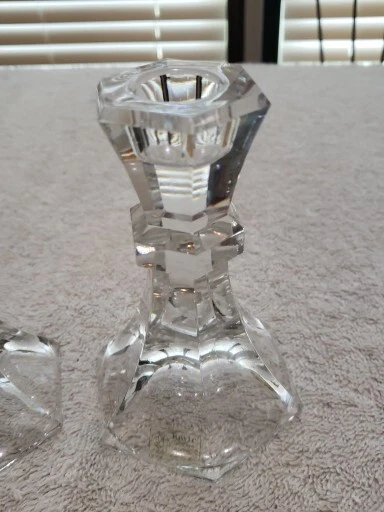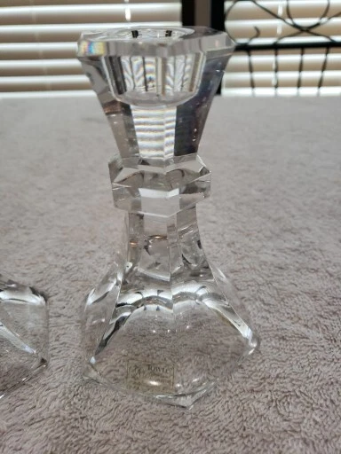 Enhance your home decor with these exquisite candle holders that are sure to add a touch of elegance to any room. Crafted from 24% lead crystal, these candlesticks feature beautiful crystals that sparkle in the light. Made in Austria, they are a testament to the country's rich tradition in crafting fine crystalware. Perfect for any occasion, these candle holders measure 5 inches in length and can hold a variety of candle sizes. Whether you're looking to add a touch of sophistication to your living room or create a romantic ambiance for a special occasion, these candle holders are sure to impress.