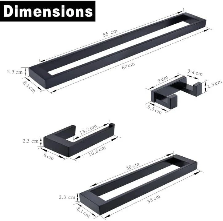 Return Policy Fast Delivery Trusted seller Towel Bar Sets Matte Black 4-Piece Bathroom Hardware Accessories Set 304 Stainless Steel Wall Mounted Bath Towel Rack Set,24 Inch Product Description Shipping Returns Payment Shipping Shipping is FREE to all addresses other than APO/PO boxes in the lower 48 states. All our stock ships from US-based warehouses. Shipped via USPS or UPS (depending on location and package weight) Unless stated otherwise, all orders will ship within 24-72 hours of your payment being processed. Check our feedback to see the great reviews of FAST shipping we offer. Returns Seller does not accept returns Payment We currently accept payment via eBay managed payments only. Once payment is cleared, we will dispatch your shipment within 1-3 business days. Please refer to the "Shipping" tab for more information regarding shipping speed to your destination.