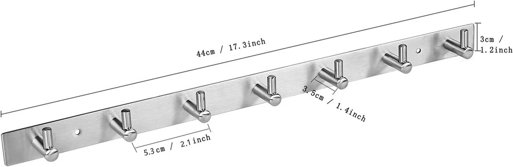 Store New Arrivals Add to Favorite View Feedback Contact Towel Hook Rack Wall Mounted 17-Inch Coat Hanger with 7 Heavy Duty Hook, Easy to Install Rail for Bedroom, Bathroom, Foyer, Hallway, Garden, Office (304 Stainless Steel Brushed Nickel) Description Weight Capacity Maximum 20 Pounds Mounting Type 墙体 Item Dimensions 17.3 x 2 x 2 inches Color Silver Material Stainless Steel Material Type Stainless Steel Weight Supported 15 Kilograms Item Weight 0.56 Kilograms Number of Hooks 7 Theme Modern Recommended Uses For Product Key Hanger, Towel, Wall, Holder, Coat Surface Recommendation Bathroom Shape Circle Finish Types Brushed Additional Features Adjustable Easy Install, Rust Resistant Finish Type Brushed Style Name Modern Included Components Mounting Hardware ★ Versatile Use - This Hook Rack is suitable for various locations, including bathrooms, kitchens, living rooms, entrances, and offices. Use it to hang coats, towels, keys, jackets,kitchenware, hats, wallets, and more, adding functionality and organization to your space. ★Easy InstallationI - Mounting this wall hook rack is a breeze, whether on a wall or wooden door. It includes all necessary mounting hardware, ensuring a hassle-free installation process. ★ 304 stainless steel - The surface of Sagmoc hook rack was wiredrawing treatmented, moisture-proof and anticorrosion, long time resistance to salt, water and other acidic substances corrosion, able to withstand the most demanding conditions. ★ Thicker rod & strong load-bearing - The base is enlarged and thickened, high-end and firm, not easy to deformation, solid hook design, non-slip and not fall. All the hook head of the coat rack made chamfer treatment, not easy to hurt people and items. (Special reminder: We ensure that our product size is approximately 17.3 inches long and weighs approximately 0.55 KG, as shown in the picture. Please consider whether this size meets your needs before purchasing to avoid returns due to size mismatch). Features : We grasp every subtle detail and focus on quality. Every hook is carefully grinded and polished to make sure every aspect of it is smooth and never hurt our customers’hands. The main panel uses wiredrawing craft and solid material to make the hook durable, anti-slip and feel good. We adopt Germanic welding technology to make the welding part strong and durable. Thick and fine packaging can protect surface from scratches. In addition, it can absolutely satisfy your purpose. You can hang rags, keys, hats and bags, etc. on it.(Special reminder: Some customers have reported that the actual product they received feels a bit small. In fact, we ensure that our product size is approximately 17.3inches long and weighs approximately 0.55KG, as shown in the picture. Please consider whether this size meets your needs before purchasing to avoid returns due to size mismatch). ABOUT US We offer the best prices around on high quality products. Our E-store includes media such as books, movies, music and games while offering electronics, toys, sporting apparel, clothing, tools, general home, garden items and more. SHIPPING We are always working hard to ensure your package arrives as soon as possible. Please understand that some factors like weather, high postal traffic, and the performance of shipping companies are outside of our control. We offer free shipping to the lower 48 states and ship within 2 business days of payment, usually sooner. We do not accept P.O. Boxes. Please provide a physical address. For shipping outside of the continental USA, we only use eBay's Global Shipping Program.The item is shipped to KY and then sent to the rest of the world. International customers are responsible for all duties and taxes. Continue to check out in order to calculate costs for shipping the item to your country. Messages regarding eBay's Global Shipping Program MUST be directed at eBay EXCLUSIVELY. RETURNS We offer a 30-Day Return Policy on items which you are not completely satisfied with. You have the option for a full-refund or an exchange of the item. No returns are available on items shipped outside of the USA. PAYMENT We accept PayPal. CONTACT US This page content is yet to come Please ad us to your favorite seller and visit again later Thank You CUSTOMER SATISFACTION We try our very best to make sure every customer is completely satisfied. If there's a problem, message us! We're happy to help. WE ACCEPT Copyright © 2021 AutoDS. | All Rights Reserved