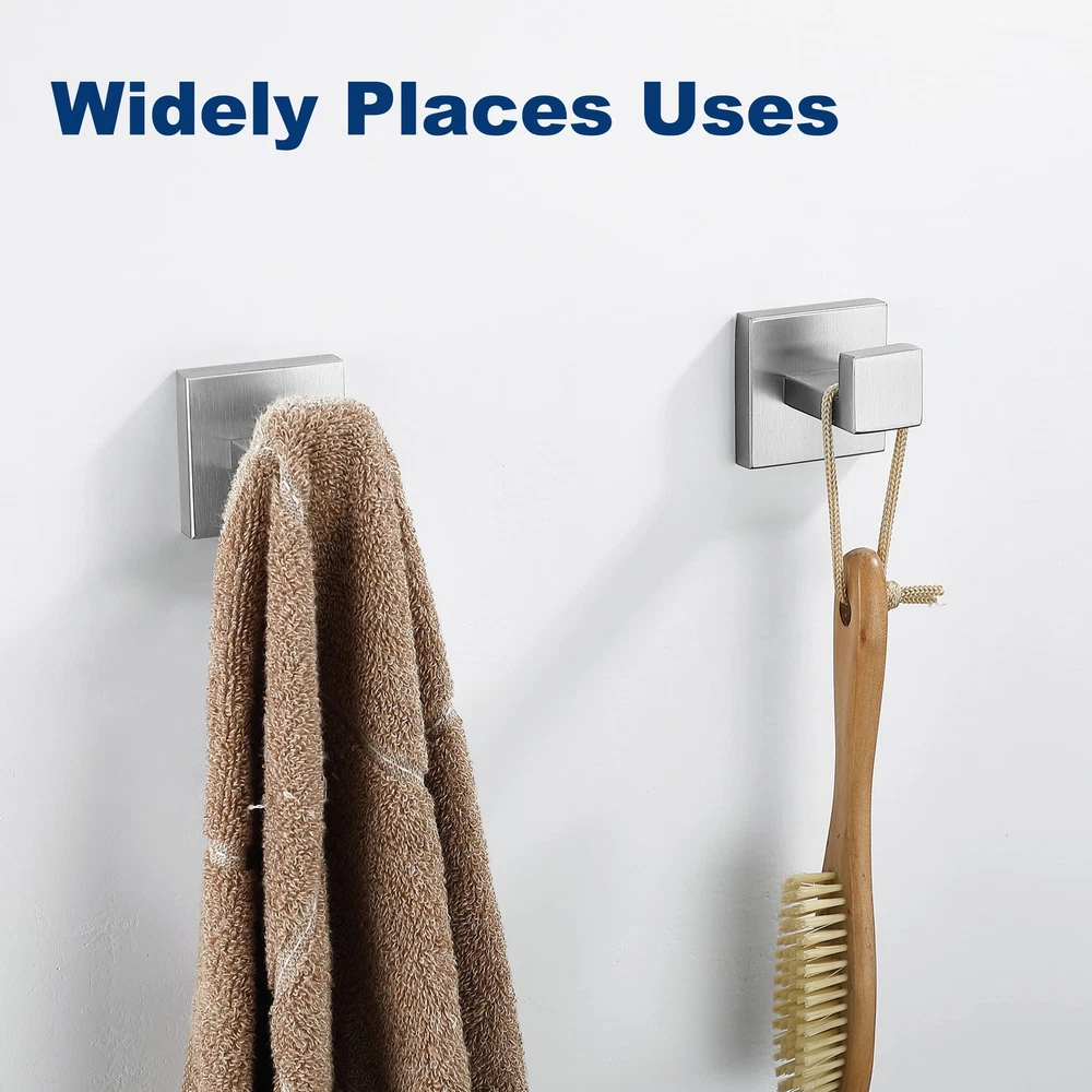 [Great Performance to Anti Rust]: The towel hooks for bathroom is made of metal SUS304 type high-quality stainless steel, added with 18/10 chromium/nickel content, corrosion-resistant, heavy-duty, and never rust. 4 protective layers are added to SUS304 stainless steel to make it more sturdy, firmer, more rust-proof and smooth, without sharp edges.Suitable for the humid environment such as bathroom and kitchen. [Brushed Nickel Finish]: Our Brushed Nickel towel hook is hand brushed stainless steel finish and compatible with your modern bathroom design and build to resist corrosion, scratches and tarnishing.Stylish wall hooks, beautiful and fashionable. [Super Easy to install & Remove]: The coat hooks wall mounted are very easy to install and remove and come with all hardware screw accessories. With detailed installation guide, the bathroom towel holder is easy enough to be installed by yourself without professional installer.All accessories included as well as one instruction to refer to. The job can be done within a few minutes. [Multi-applications & Multi-Functions]: Our bath towel hooks is ideal for hanging towel, coat, hat, bag, belt, key, scarf, suitable for bathroom, kitchen, bedroom, restroom, garage, laundry room, hotel, RVs, campers, boats and cabinet.The towel hanger for bathroom can be install to different surfaces such as marble, ceramic tile, wood, etc. [You Will Get]: 4 pcs bathroom robe hooks and 1set mounting accessories.If you have any problems about the products & installation,please contact us freely on Amazon.