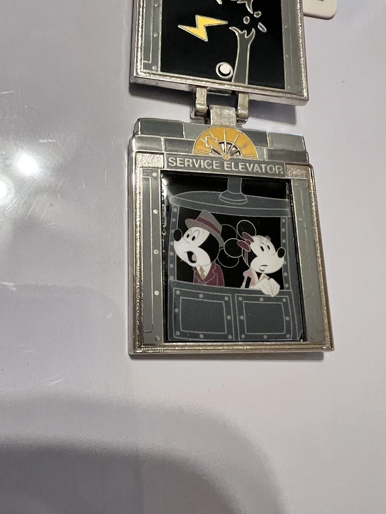 This Disney Parks Hollywood Studios Tower of Terror Service Elevator Pin is a must-have for any Disneyana collector. Featuring the iconic Mickey Mouse character, this hinged pin is an exclusive item that is perfect for fans of the Tower of Terror theme