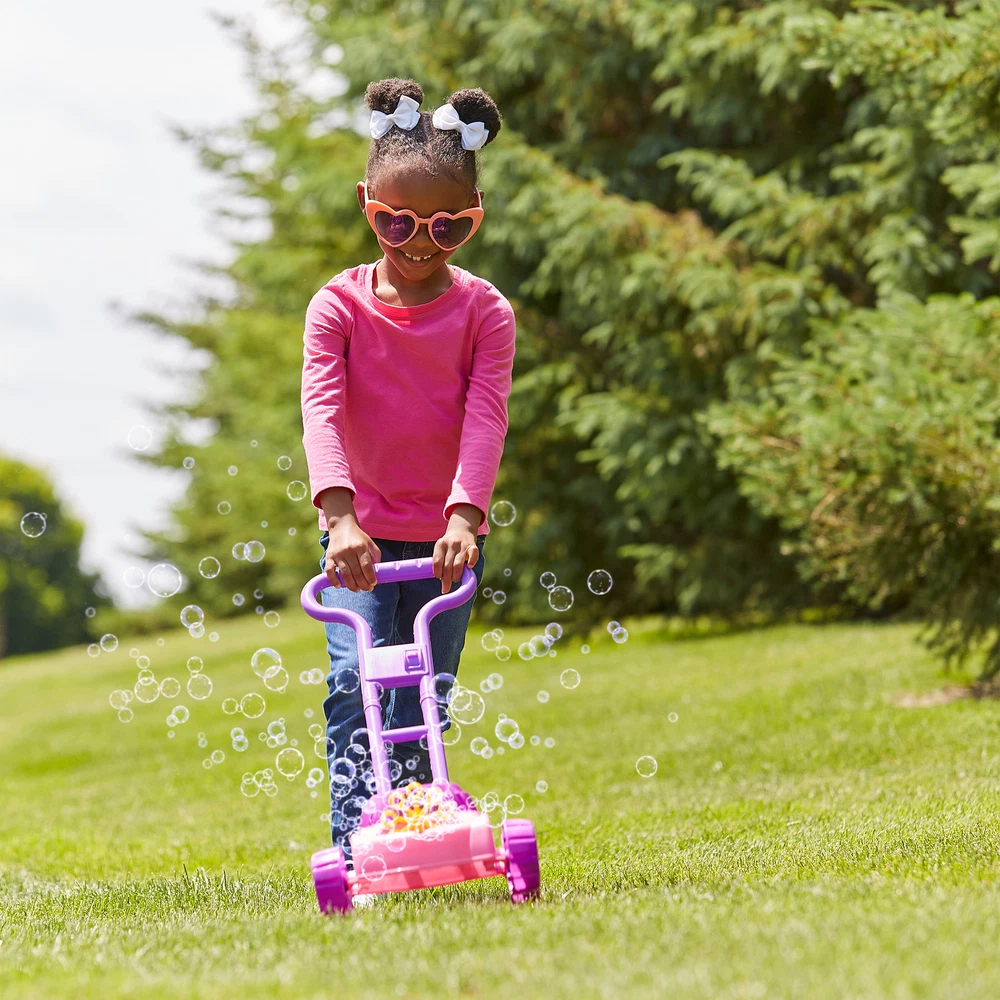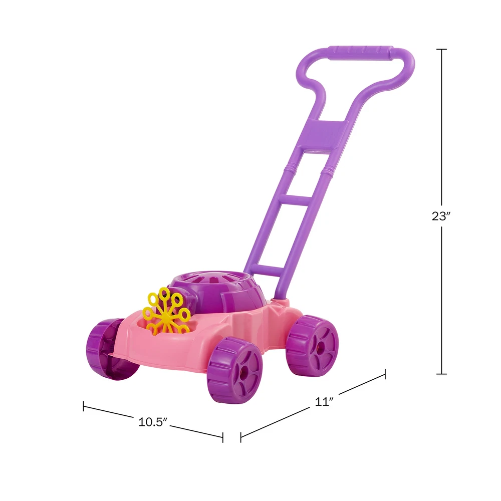 Toy Push Bubble Lawnmower Pretend Play Bubble Machine Lawn Mower Pink Doing business on eBay since 2001 Toy Push Bubble Lawnmower Pretend Play Bubble Machine Lawn Mower Pink Free Standard Shipping! 2 Day Shipping : 45 Next Day Air : 75 Product Details: BUBBLES INCLUDED - This magnificent bubble blowing lawn mower continuously blows bubbles that magically float through the air and provides non-stop fun. This push toy comes with a bottle of bubbles so you can create bubble mania right away! MECHANICAL SOUNDS- With a push of a button this walk behind toy starts blowing bubbles and sounds just like a real mower mom and dad use on the lawn. This playful bubble mower requires 3AA batteries (not included) for use. PUSH TOY - Made from durable lightweight plastic, this push toy is great for toddlers with steady steps and school age children with lots of energy to expel. The child-friendly design and convenient handle make this mower great for almost any terrain! PRETEND PLAY- Keep your child entertained for hours with this awesome bubble blower that encourages pretend play as your little one mimics adults caring for their lawn. This marvelous outdoor toy makes a great gift for a boy or girl! PRODUCT DETAILS- Materials: Plastic. Dimensions: (L) 10.5 In. x (W) 12 In. x (H) 19 In.. Includes: (1) Bottle of Bubbles. Requires 3AA Batteries (not included). Color: Blue, Green and Orange. Shipping We can only ship to the 48 states We normal have a 1-2 business day handling time We are unable to change an address after a package leaves Office and warehouse hours are Monday through Friday Contact Us Through Ebay Messages Only Hours Monday - Friday : 9:00 am - 5:00 pm EASTERN. 30-Day Limited Warranty If you have changed your mind, you may return this to us for any reason. If your item is damaged, or different than expected, please contact us through ebay messages We will be happy to assist with any question you have