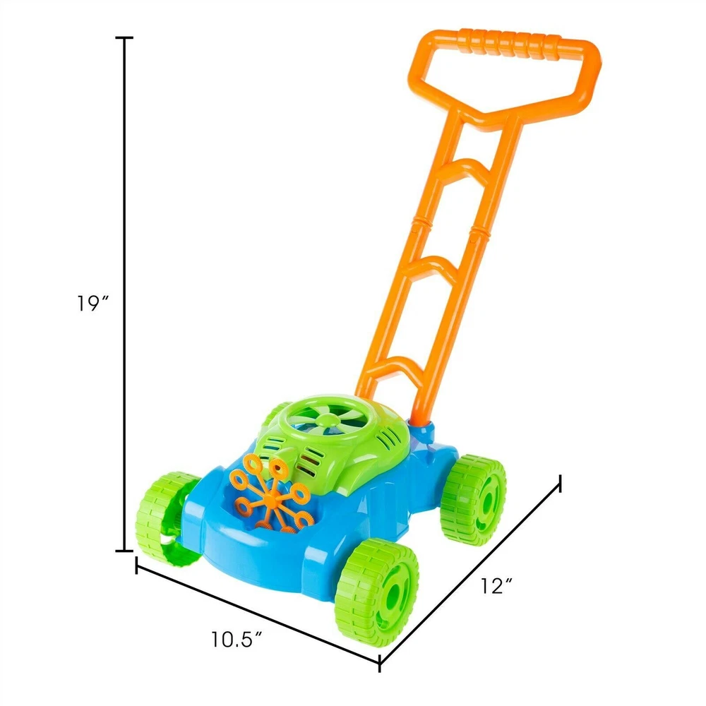 Toy Push Bubble Lawnmower Pretend Play Bubble Machine Lawn Mower with Sound Doing business on eBay since 2001 Toy Push Bubble Lawnmower Pretend Play Bubble Machine Lawn Mower with Sound Free Standard Shipping! 2 Day Shipping : 45 Next Day Air : 75 Product Details: BUBBLES INCLUDED - This magnificent bubble blowing lawn mower continuously blows bubbles that magically float through the air and provides non-stop fun. This push toy comes with a bottle of bubbles so you can create bubble mania right away! MECHANICAL SOUNDS- With a push of a button this walk behind toy starts blowing bubbles and sounds just like a real mower mom and dad use on the lawn. This playful bubble mower requires 3AA batteries (not included) for use. PUSH TOY - Made from durable lightweight plastic, this push toy is great for toddlers with steady steps and school age children with lots of energy to expel. The child-friendly design and convenient handle make this mower great for almost any terrain! PRETEND PLAY- Keep your child entertained for hours with this awesome bubble blower that encourages pretend play as your little one mimics adults caring for their lawn. This marvelous outdoor toy makes a great gift for a boy or girl! PRODUCT DETAILS- Materials: Plastic. Dimensions: (L) 10.5 In. x (W) 12 In. x (H) 19 In.. Includes: (1) Bottle of Bubbles. Requires 3AA Batteries (not included). Color: Blue, Green and Orange. Shipping We can only ship to the 48 states We normal have a 1-2 business day handling time We are unable to change an address after a package leaves Office and warehouse hours are Monday through Friday Contact Us Through Ebay Messages Only Hours Monday - Friday : 9:00 am - 5:00 pm EASTERN. 30-Day Limited Warranty If you have changed your mind, you may return this to us for any reason. If your item is damaged, or different than expected, please contact us through ebay messages We will be happy to assist with any question you have