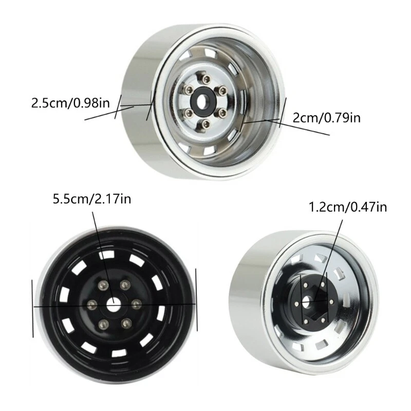 Features: Elevating your Toy crawler performances with the Beadlock Wheel, featuring a 12spokes designings for enhancing stability and control. Use selected aluminum alloy, these remote control wheel rims with a unique shaped hole that ensures durability and efficient heat dissipation. Great for Toy enthusiasts who love to upgrade their vehicles, these rims suitable for both hobbyists looking to stands out and competitive racers seeking upgrades. Functional enough for any terrains, the beadlock are for tackling rock mountainsides, sand beaches, or mud road, enhancing your 1/10 scale Toy crawler Offroads capabilities. Suitable for popular models like for SCX10, these stylish rims provide a seamlessly upgrade, ensuring your crawler looks as good as it performs on any adventure. Specifications: Aluminum alloy Product Dimension: approx. Width 25mm/0.986inch, outer diameter 55mm/2.16inch, inner diameter 12mm/0.47inch Color: 01/02/03/04/05 Suitable for: 1:10 Toy Crawler Car Package Includes: 4PCS Remote Control Car Wheel Hubs note: Please allow 1-2cm errors due to manual measurement. Due to the difference between different monitors, the picture may not reflect the actual color of the item.