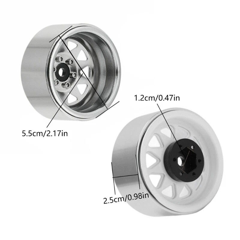 Features: Elevating your Toy crawler performances with the Beadlock Wheel, featuring a 10spokes designings for enhancing stability and control. Use selected aluminum alloy, these remote control wheel rims with a unique shaped hole that ensures durability and efficient heat dissipation. Great for Toy enthusiasts who love to upgrade their vehicles, these rims suitable for both hobbyists looking to stands out and competitive racers seeking upgrades. Functional enough for any terrains, the beadlock are for tackling rock mountainsides, sand beaches, or mud road, enhancing your 1/10 scale Toy crawler Offroads capabilities. Suitable for popular models like for SCX10, these stylish rims provide a seamlessly upgrade, ensuring your crawler looks as good as it performs on any adventure. Specifications: Texture: Aluminum alloy Product Dimension: approx. Width 25mm/0.98inch, outer diameter 55mm/2.16inch, inner diameter 12mm/0.47inch Color: 01/02/03/04/05/06 Suitable for: 1:10 Toy Crawler Car Package Includes: 4PCS Remote Control Wheel Hubs note: Please allow 1-2cm errors due to manual measurement. Due to the difference between different monitors, the picture may not reflect the actual color of the item.