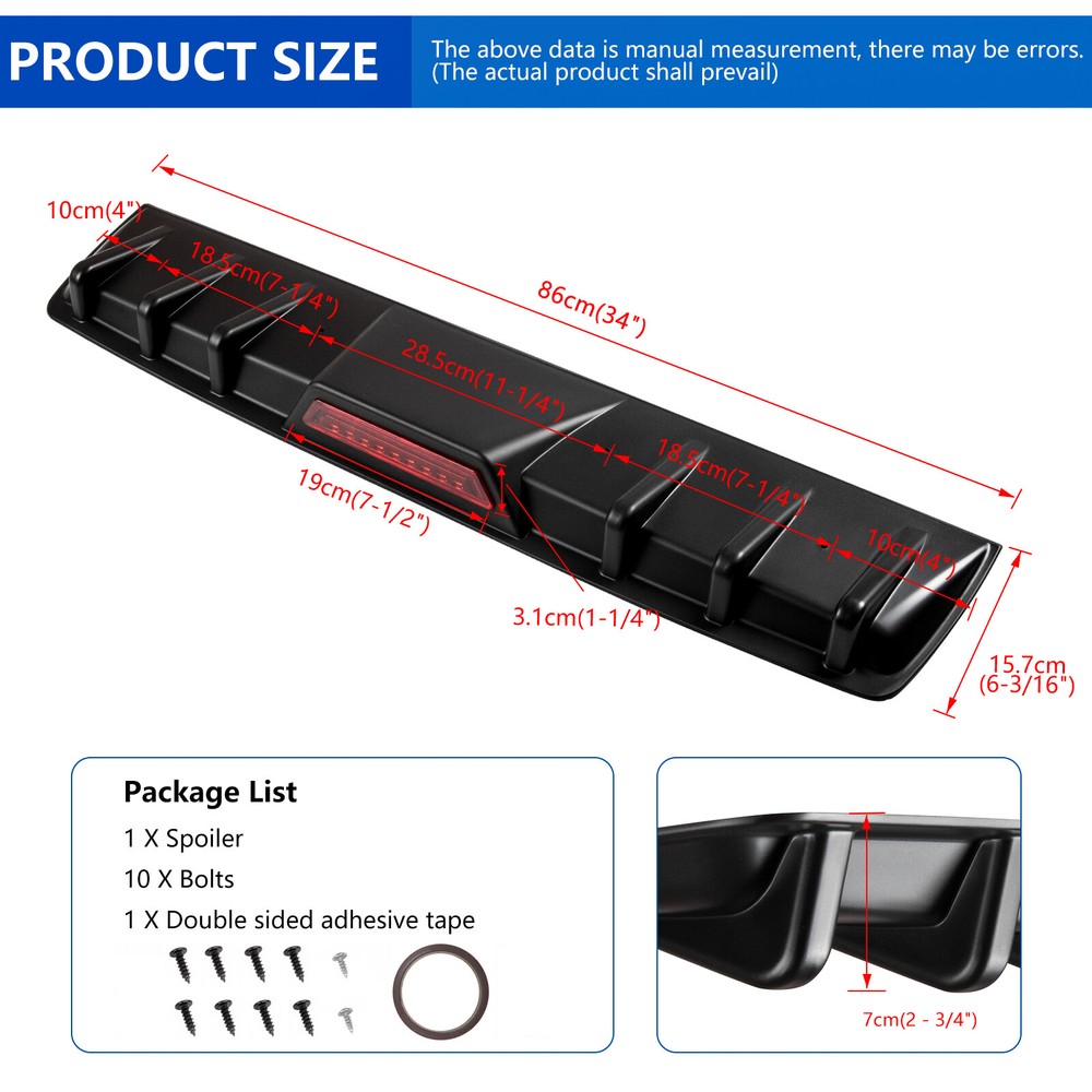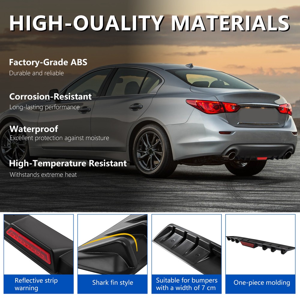 For Toyota Corolla Rear Bumper Diffuser Lip Shark Fin Spoiler Splitter Body Kit Features: Personalize and give your car a contemporary edge. Our stylish design solutions create a customized look, making your car a reflection of your unique taste. Your vehicle's rear bumper chassis and the lower rear body spoiler are made for each other, with a perfect match. Enhance the appearance of the vehicle, create a unique style, bring you a brand new visual enjoyment. Made by premium quality ABS, high strength, light weight, impact resistance and heatproof. Universal custom fitment, professional installation is required. Specification: Condition: 100% Brand New Material: ABS Plastic Type: Rear Bumper Colour: Black Placement on Vehicle: Rear Lower Dimensions: As picture show. Length 34'' Attention: These splitters will be installed at the bottom of the rear bumper, please make sure there is not an exhaust pipe in the middle of your car's rear bumper. And if your car has double exhaust pipes, the exhaust pipe spacing should be more than 81cm. Please measure your rear bumper and make sure these splitters will fit your bumper before purchase. Because of the variances among different monitors, the color shown in the picture might not accurately represent the true color of the item. With this product, we will provide adhesive tape to aid in the installation process. However, for a more secure fit and to prevent any potential separation, we highly recommend using screws to fix it through drilling. Package included: 1 x Car Rear Bumper Lip Diffuser Contract us Please contract us firstly if there are any problems when you received the package. We will definitely give you satisfying solution, please don't leave neutral or negative feedback without any communication. 1.We have always been doing our best to provide the best service and reliable products for every customer. 2.Please do not hesitate to contact us to resolve the issues.We will reply your emails and questions within 24 hours. 3.Please contact us before leaving a Negative feedback if you are not satisfied our service or products. Good communication is helpful for both of us to resolve any problems and issues. We are promising to try our best to provide the best service and 100% satisfaction for valuable buyer like you. 4.If you receive an item that is damaged, please contact and send pictures to us immediately and we will give a replacement or refund. 1 .We do everything we can to ship your orders out as soon as possible. 2. Items will be shipped within 24hs after getting your verified payment. Estimated delivery time is 2-5 working days. 1. Defective products can be exchanged or returned for full price refund within 60 days after you receive the item. 2.Buyers are responsible for appropriate packing, returning shipping cost, insurance and returning the item in “new” condition, Used items will not be accepted for return. 3.We will replace the returning item with an identical item, issue a full store credit or a full refund.