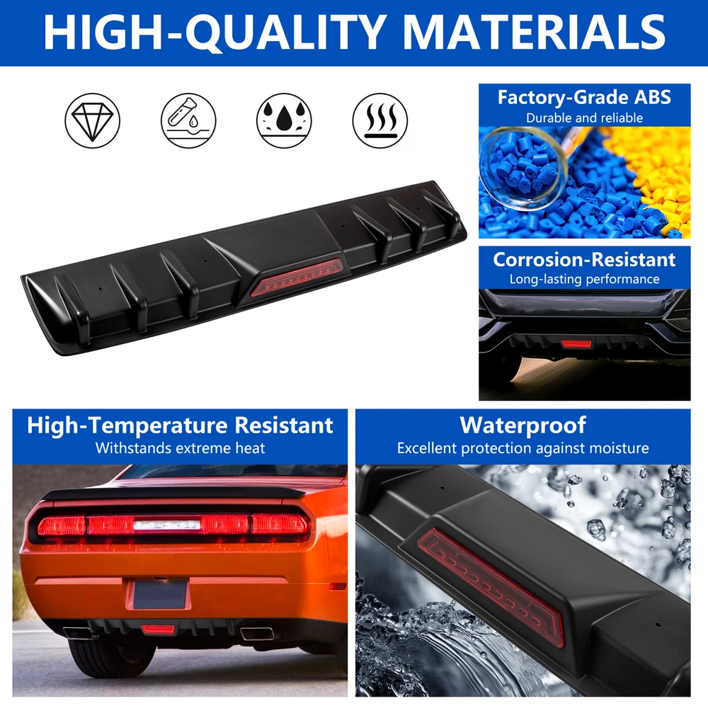 2-Piece Rear Bumper Diffuser with Shark Fin Spoiler & Carbon Fiber Lip
