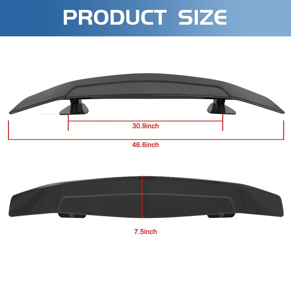 For Toyota GT86 CARBON FIBER 47'' Rear Trunk Spoiler Wing Lip GT Racing Style Color: Carbon Fiber Material: Rear Spoiler: ABS Features: 【 High-Quality Material 】This spoiler is made of Lightweight & Top-Grade Durable ABS plastic. Excellent wear and impact resistance provide a long service life. The spoiler wing is with a premium matte black exterior finish, it can be painted to any color according to your need. 【 Sporty & Stylish Look 】Our racing spoiler will add an aggressive look to your vehicle's appearance. Big GT Wing has better performance which can effectively reduce air resistance, maximize downforce, improve driving stability. Extra-smooth lines give you a cool racing look. 【 No-hassle Installation 】 Self-Adhesive design, easy to install (drilling required). Mounts easily to any trunk without the stock spoiler. Fitment : Fit for most coupe sedan hatchback vehicles. (with flat rear trunk surface) Delivery contents: 1 Spoiler, 1 Mounting Kit . Notice: If you do not know how to modify, go to a specialty store for modifications. Your order will be shipped within 1 business days ( Excluding Weekends and Public Holidays)after your payment clear. * We only ship out within US. Domestic Packages are shipped via Standard Delivery from our stock in Walton, KY, US. * Item will be delivered within 1 - 6 business days in US. We ship to Paypal confirmed address ONLY. Please make sure your address in PayPal is matched with your shipping address before you pay. * We do not offer in store pick up and return service. Regardless of response, buyer can return item within 30 days and get a full refund. Item must be returned in good condition in original packaging, not damaged, not stained, no cut.