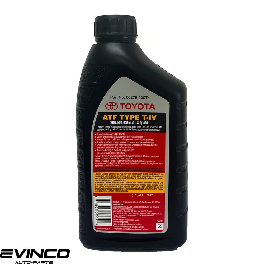 Manufacturer Part Number: 00279000t4 UPC: 071924303409 gtin13: 071924303409 Type: Type T-4 Package Quantity: 6 Country/Region of Manufacture: United States Brand: Toyota Volume: 1qt. Transmission Type: Automatic Transmission Fluid Model: 00279-000T4