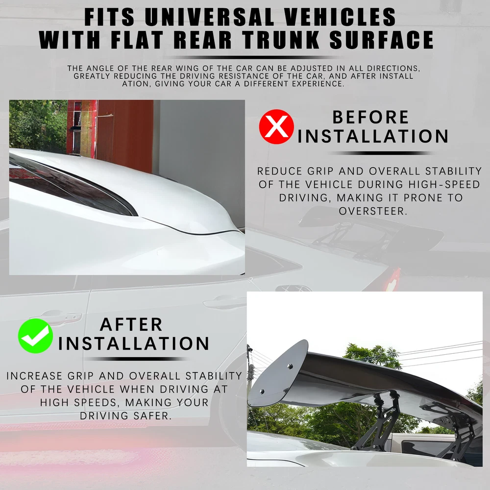 For Toyota Mark x 57'' Rear Trunk Spoiler Wing GT Style Race Adjust Gloss Black Color: Glossy Black Material: Rear Spoiler: ABS Bracket: Aluminum Features: 【 High-Quality Material 】This spoiler is made of Lightweight & Top-Grade Durable ABS plastic. Excellent wear and impact resistance provide a long service life. The spoiler wing is with a premium matte black exterior finish, it can be painted to any color according to your need. 【 Adjustable Brackets 】The GT universal spoiler has fully adjustable angles for customizable usages and improves your exterior style. The angels of our GT wing spoiler can be easily changed by just adjusting the exterior brackets, depending on the arcs and styles of your vehicle. 【 Sporty & Stylish Look 】Our racing spoiler will add an aggressive look to your vehicle's appearance. Big GT Wing has better performance which can effectively reduce air resistance, maximize downforce, improve driving stability. Extra-smooth lines give you a cool racing look. 【 No-hassle Installation 】Bolt-on design, easy to install (drilling required). Mounts easily to any trunk without the stock spoiler. Fitment : Fit for most coupe sedan hatchback vehicles. (with flat rear trunk surface) Delivery contents: 1 Spoiler, 2 Brackets, 1 Mounting Kit . Notice: If you do not know how to modify, go to a specialty store for modifications. Your order will be shipped within 1 business days ( Excluding Weekends and Public Holidays)after your payment clear. * We only ship out within US. Domestic Packages are shipped via Standard Delivery from our stock in Walton, KY, US. * Item will be delivered within 1 - 6 business days in US. We ship to Paypal confirmed address ONLY. Please make sure your address in PayPal is matched with your shipping address before you pay. * We do not offer in store pick up and return service. Regardless of response, buyer can return item within 30 days and get a full refund. Item must be returned in good condition in original packaging, not damaged, not stained, no cut.