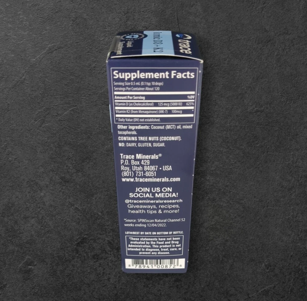 Trace Minerals Ionic D3 + K2 Liquid Supplement Drops 2 fl oz