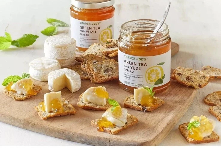 riginally cultivated in mainland East Asia, but now more typically associated with Japanese cuisine, specifically, a yuzu is a refreshingly aromatic citrus with a flavor somewhere between a grapefruit and a Mandarin orange. It’s often paired with sweeter, spicier, and earthier flavors, and makes a particularly great pairing with honey, chile peppers, and green tea. In fact, that last combo is what inspired our uniquely delicious, summer-seasonal, Trader Joe’s Green Tea & Yuzu Spread. It’s crafted for us in small batches by a supplier in Belgium, who’s particularly adept at combining complementary ingredients to create uniquely rich flavor profiles. In this case, they mix Green Tea that’s been infused with lemongrass, ginger, and orange peel, along with apple and lemon juice concentrates and tantalizingly tart Yuzu juice, resulting in a sweet, citric, marvelously multi-dimensional Spread. Aside from making an excellent jelly for your morning toast or muffin, it also provides a pronounced pop of flavor when spread on sandwiches, over roast chicken and fish, or mixed into marinades. And when you’ve got friends over for a charcuterie board or cheese plate, trust us: adding a bit of Green Tea & Yuzu Spread will make those savory flavors truly sing Brand New Fresh stock Fast shipping! Thank you 😊