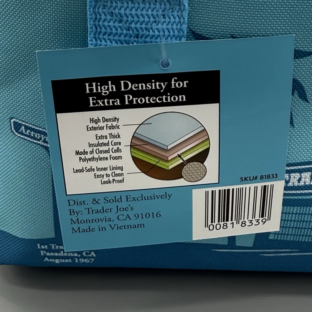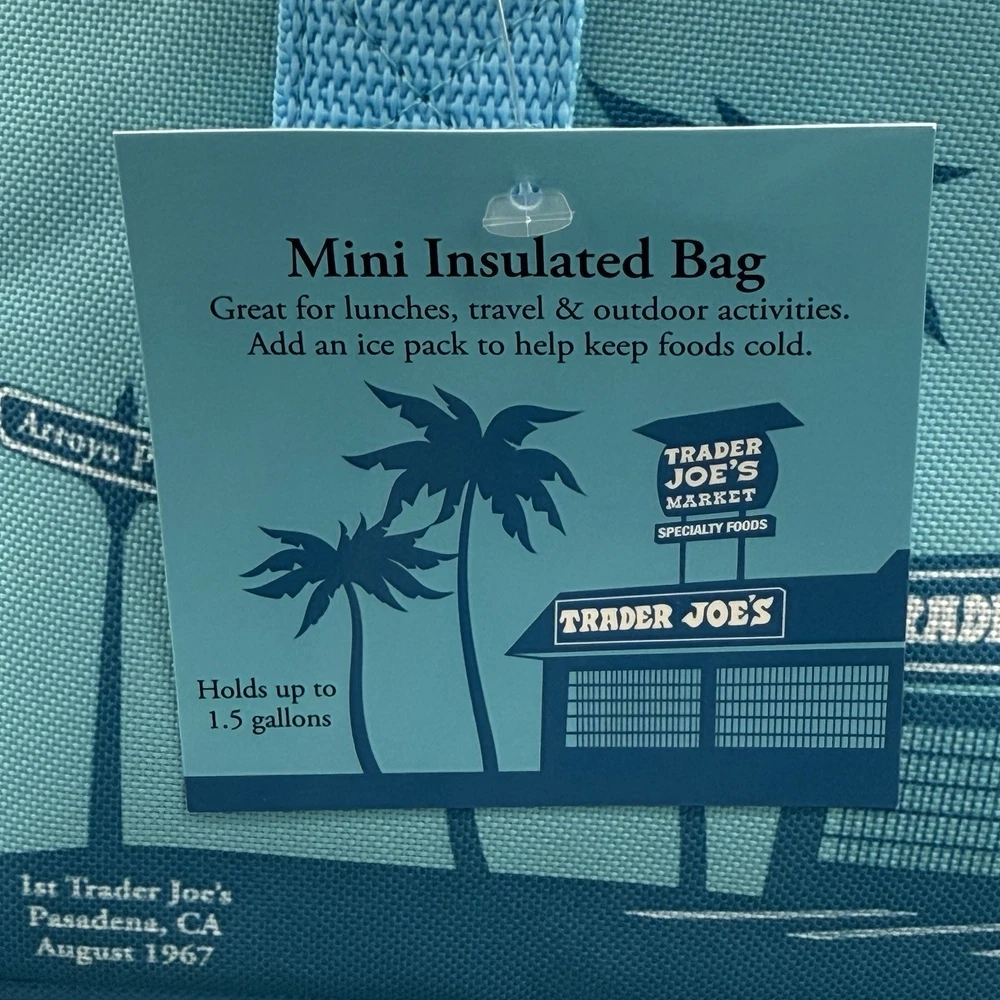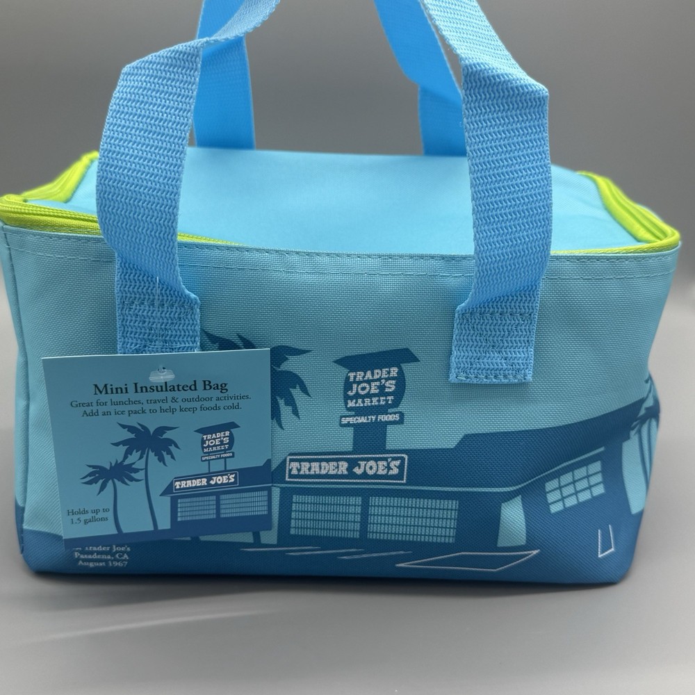 The Trader Joe's Mini Insulated Lunch Bag in Blue Green is a stylish and practical choice for carrying your meals on the go. With a spacious 1.5 gallon capacity and one compartment, this rectangular lunch bag is perfect for keeping your food fresh and organized. The modern design features a handle lid for easy access, and the durable fabric material makes it easy to clean. Perfect for Trader Joes fans, this limited edition lunch bag is both functional and fashionable for everyday use.