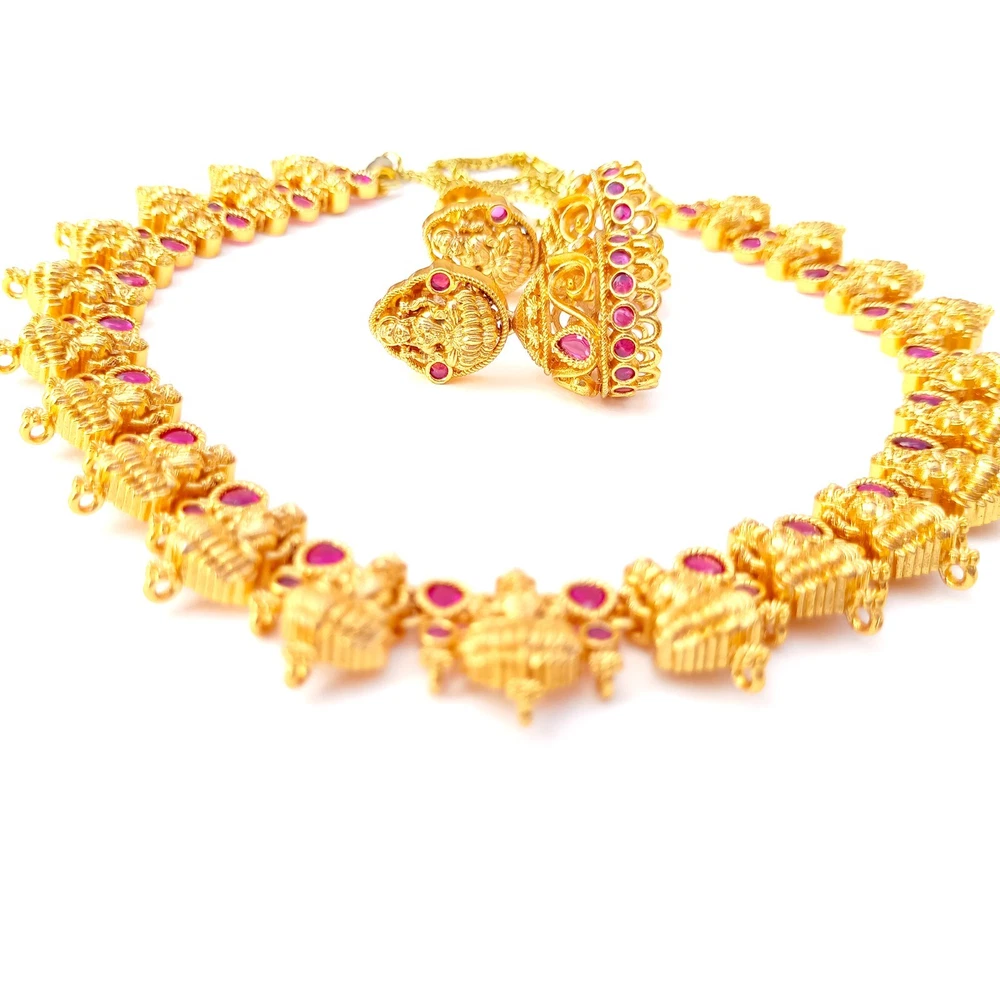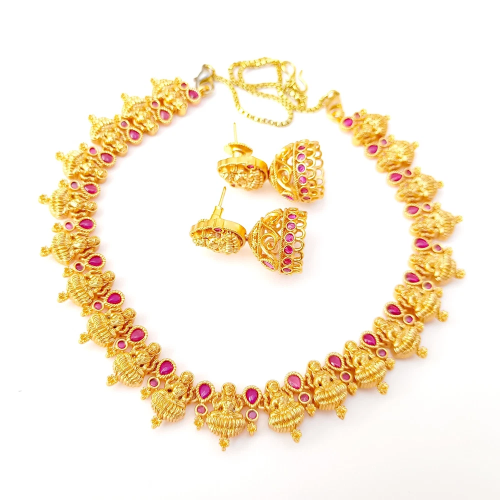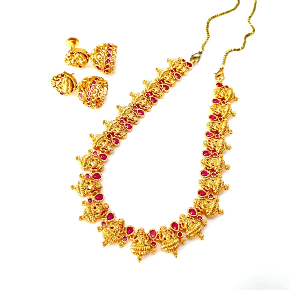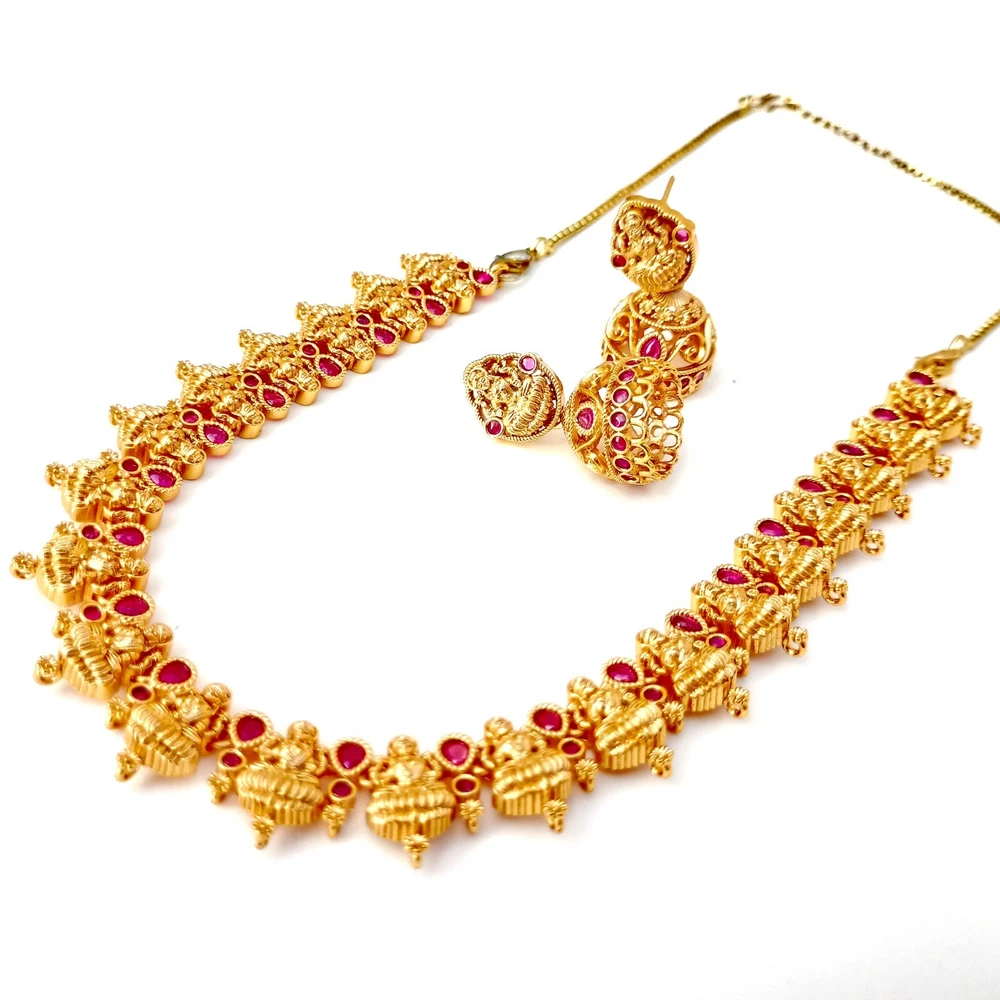 $ 52.8Premium Ruby Necklace jewelry, White plated Necklace, South Indian Necklace